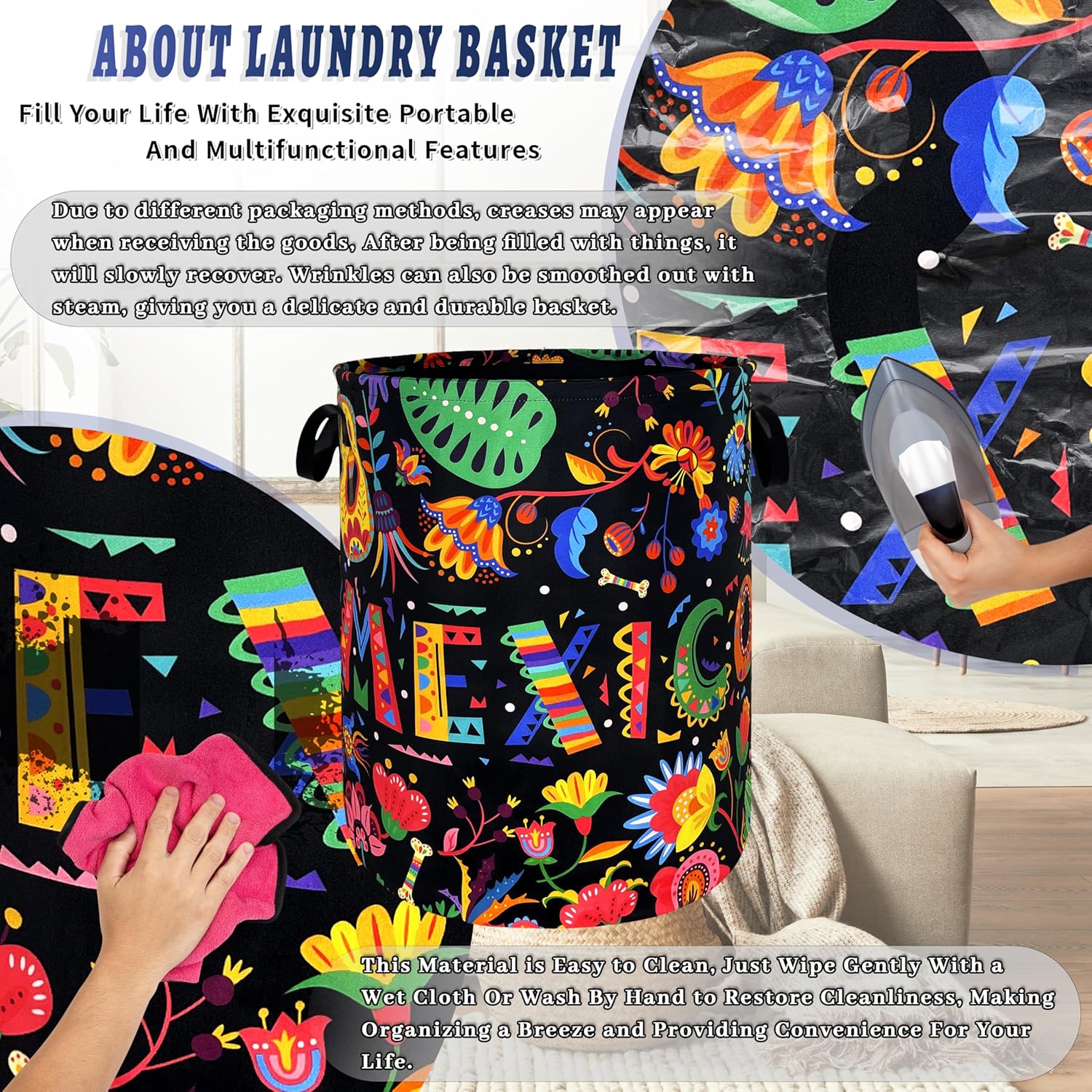 RGIFYIAE laundry basket adds decorative storage to your life. It is not only a good helper for home life, but also a charming decorationOxford cloth material, lightweight and durable, and lining is added, which is more beautiful and tidyThe laundry basket measures 18.9 inches/48 cm (height) x 16.5 inches/41 cm (depth), with enough space to store a large number of clothes and various items. Vibrant pattern design enriches the color of your home environmentFoldable function, when not in use, our laundry basket can be folded up, which can save space and facilitate storage, which is very suitable for people with busy lives. Secondly, it can make our home well organized and make tidying up a breeze!Why choose our laundry basket?Our laundry basket is not just a storage solution. It is also a combination of beauty and practicality (the laundry basket you just received has compressed packaging, and it may wrinkle during long-distance transportation. This is a normal phenomenon. You can use an iron and a hair dryer to iron it flat or load clothes. It will recover after a few days of use). In addition to storing clothes, it can also be used to organize toys, clothes, office sundries and household sundries. It has a wide range of uses and can be placed in the bathroom, bedroom, laundry room, children's room, dormitory, kitchen, office and other places to make your living environment beautiful and tidy. Easy to clean, just wipe it lightly with a cloth, or wash it by hand, which is very convenient. The eye-catching laundry basket can add a touch of art and functionality to your home!