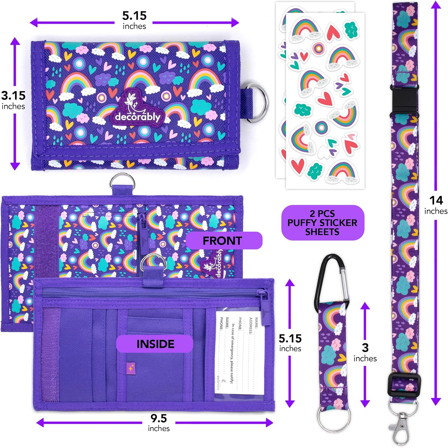 • FUN MATCHING INCLUSIONS - Elevate the fun of kid wallets girl & childs wallet girls age 4-8 with colorful butterfly designs, two included lanyards for keeping the butterfly wallet for teen girls secure & accessible, & two sheets of puffy stickers.