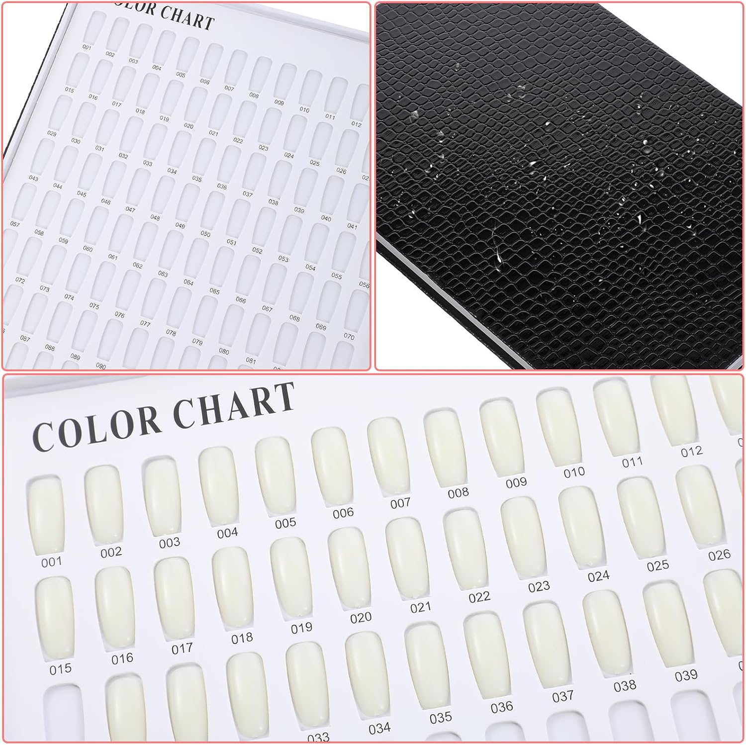 NAIL ART PRACTICE: This nail polish book is a must have for DIY nail design and nail polish practice learners. Suitable for nail salon/manicure/pedicure, also can be used to practice nail coloring. Help people show their DIY style through nail art.REMOVABLE AND REUSABLE: Nail display book comes with 360 nail pieces, the back of the nail piece is flat, and it can be disassembled and replaced when needed. The color of the nail pieces is natural color, which is easier to apply color than transparent and white nail pieces. It can save nail polish, but also better restore and display the color of gel and nail polish.Specifications:Material: PVCColor: BlackSize: about 15.2 x 9.96 x 1.18 inchesPackage includes:1 x 308 Nail Colors Chart with 360 nail piecesNotes:Manual measurement, please allow slight errors on size.The color may exist a slight difference due to different screen displays.