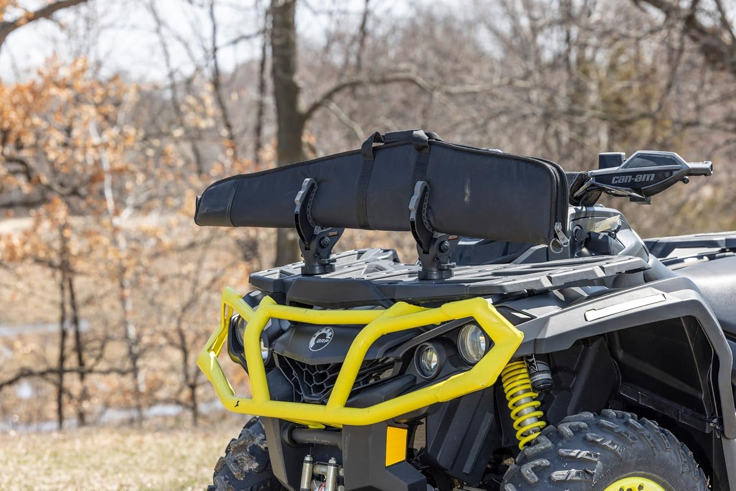 Racheting Rhino Grip has a heavy-duty design to carry guns, bows, fishing poles, ice augers, shovels, rakes, farm tools and other items 1-4” in diameter on your Can-Am® ATV or Side x Sides. One-Handed and Release. The ability to adjust the 2 grips to different widths to accommodate odd shapes makes these extra-versatile. Includes hardware and mounting plates. Can-Am LinQ Compatible Plungers included. Plungers compatible with Can-Am® ATV and UTV racks using LinQ System. Sold as a pair.