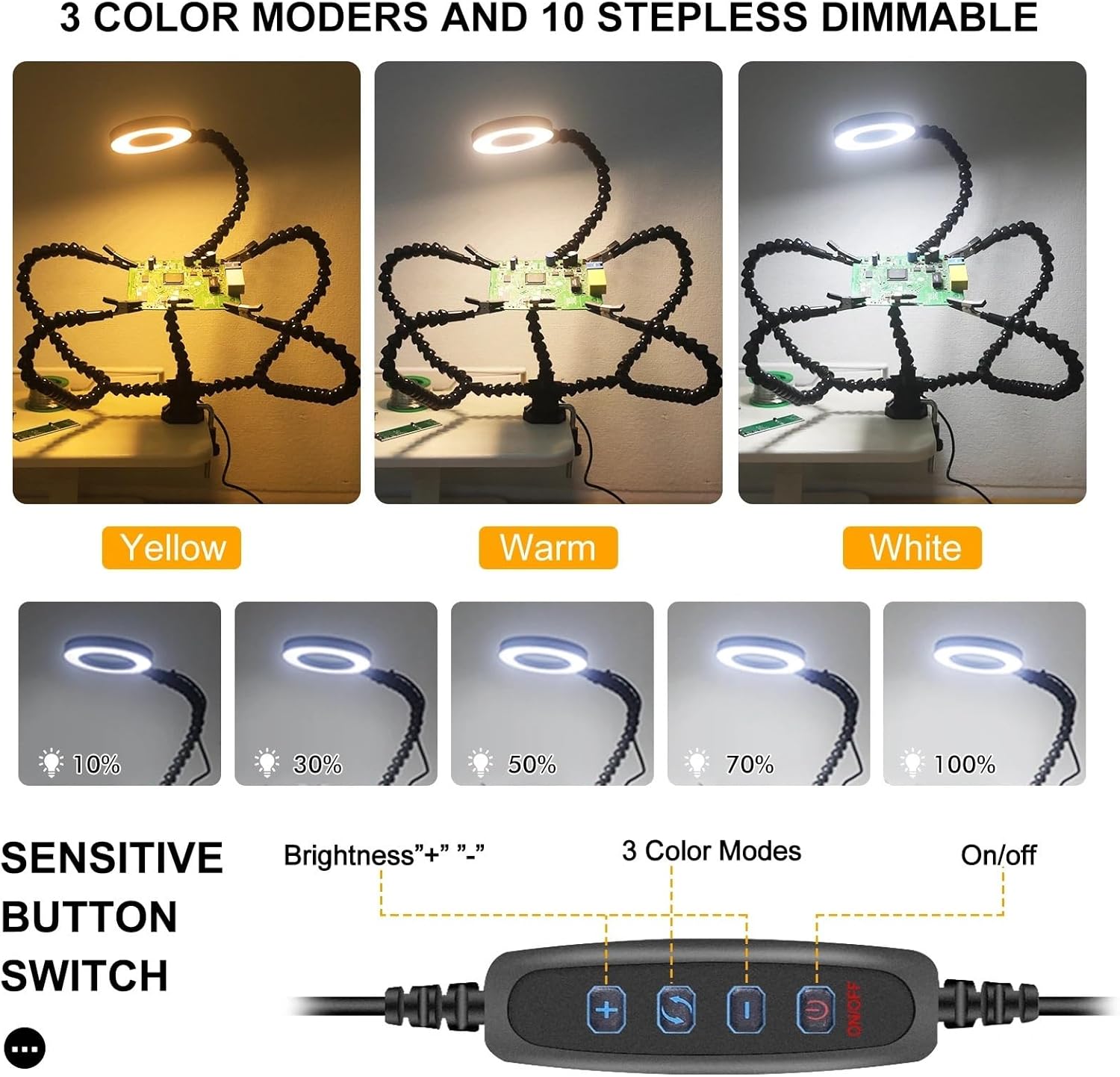 Spot Welding EquipmentSpecification:Color:Blue/BlackBase clip material: PlasticUniversal Joint Pipe Length:90+ 270mm/300mmMagnifying Glass Multiple: 3X Magnifying GlassMagnifying Glass Diameter: 55mm