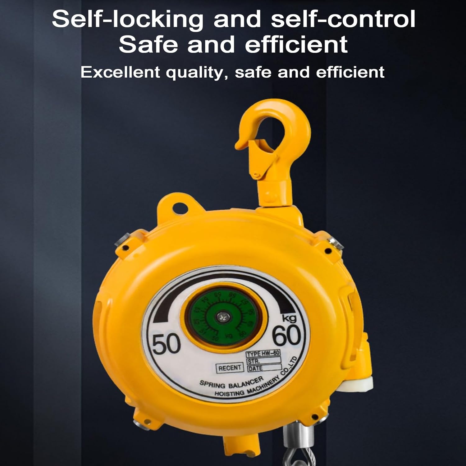 1. **Alloy Steel Hook**: Crafted from high-quality alloy steel, this hook is designed to be sturdy and durable. Featuring a safety buckle, it ensures that items remain securely in place without the risk of falling.2. **High-Quality Steel Wire Rope**: The thickened and reinforced steel wire rope offers exceptional toughness and longevity, making it resilient to wear and unlikely to break during use.3. **Aluminum Cone Wheel**: Equipped with a high-quality self-locking control system, this aluminum cone wheel allows for precise control and smoother operation, enhancing user convenience.4. **Buffer Rubber Sleeve**: The thickened, high-quality buffer sleeve effectively absorbs shock, reducing buffering force and significantly increasing overall safety.5. **Locking Safety Buckle**: Features a reliable locking mechanism, this safety buckle ensures a secure and stable connection.**Specifications:**- 1.9m - Load Capacity 5-9 kg- 1.9m - Load Capacity 9-15 kg- 1.6m - Load Capacity 15-22 kg- 1.6m - Load Capacity 22-30 kg- 1.6m - Load Capacity 30-40 kg- 1.6m - Load Capacity 40-50 kg- 1.6m - Load Capacity 50-60 kg- 1.6m - Load Capacity 60-70 kg- 1.6m - Load Capacity 70-80 kg**Note:**1. When using the balancer, ensure that the safety chain is connected first.2. The rotating worm maintains a suspended state while minimizing reverse force and maximizing forward force.3. The weight of the tool must not fall below the minimum load or exceed the maximum load.**Package Includes:**1 Spring Balancer