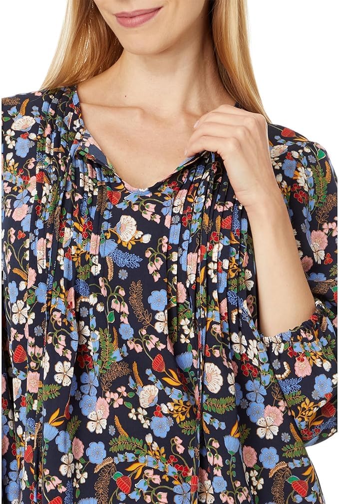 Give your casual look a chic and sophisticated vibe wearing the Tommy Hilfiger Dot Pintuck Blouse. The pull-on style blouse features a keyhole neckline with tie-up detail, pleating at the chest, three-fourth sleeves with elasticated cuffs, and an allover print that looks quite attractive. Classic fit. 100% polyester. Machine washable.