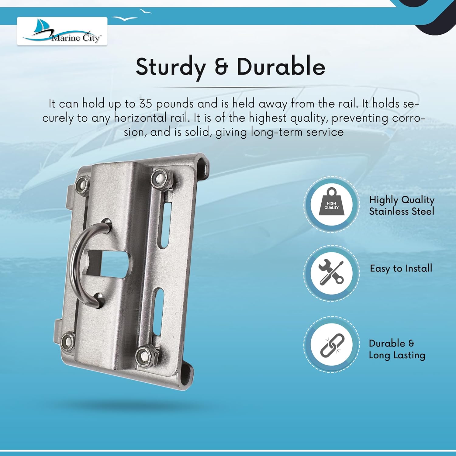MARINE CITY Stainless Steel Rail Mount Anchor Bracket, 35 lb Capacity, Horizontal Stanchion, Corrosion-Resistant, Easy Install, for Marines, Boats, Yachts, Ships