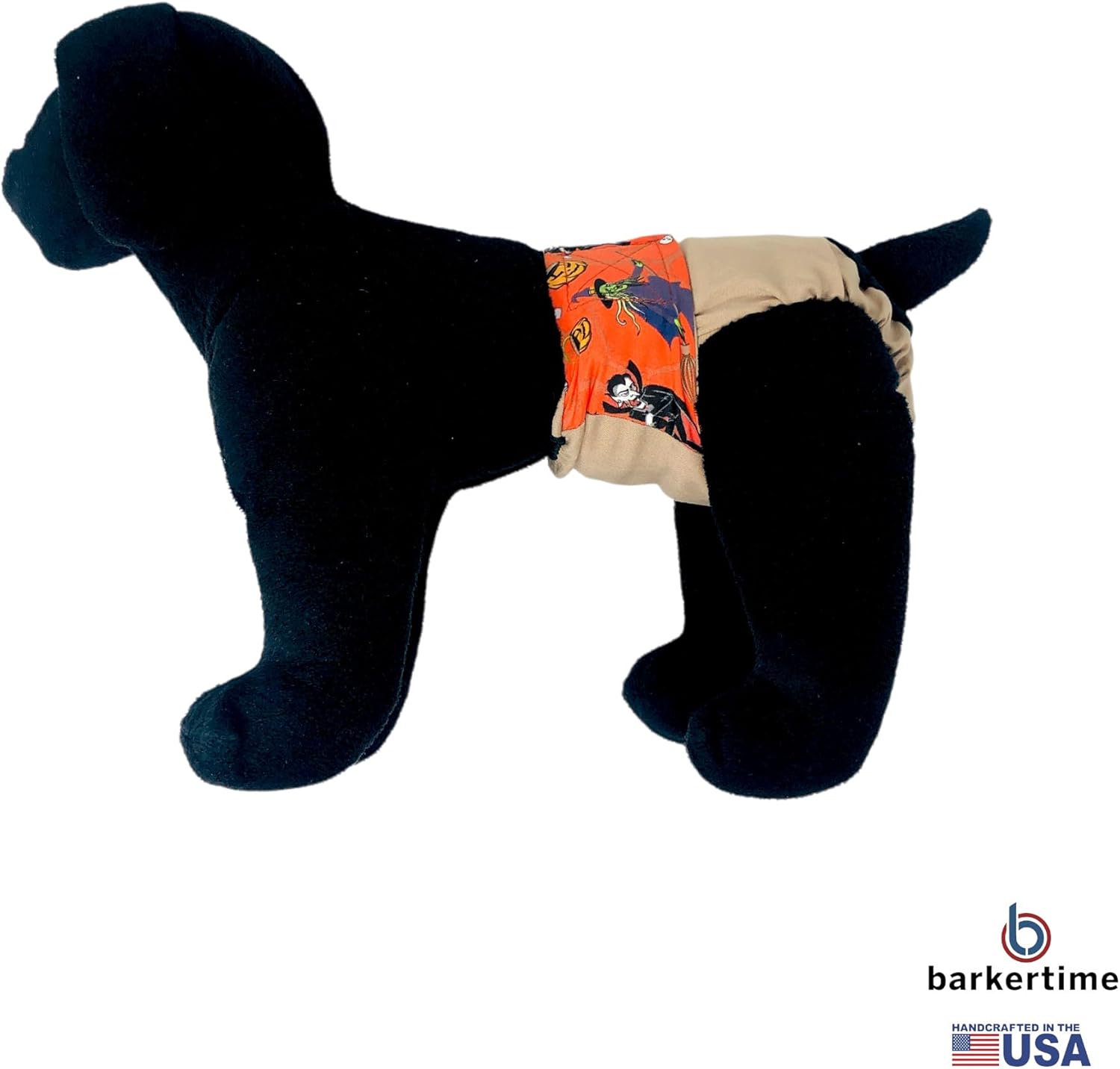 Perfectly hand-crafted diapers for both male and female dogs with incontinence issues, excitable urination, male marking and female dogs in heat. Each diaper is thoughtfully designed with multiple layers of protection, giving you peace of mind and your pet comfort during "messy" times?. Available in hundreds of prints and designs for your stylish furbaby.Sizing Guide For Diapers Britches:Please go up one size if your dog is between sizes. Below are Waist Measurements for each size: Size XS: 9-12 in Size S: 12-15 in Size M: 15-18 in Size L: 18-22 in Size XL: 22-30 in Size XXL: 30-43 in Check out Barkertime on Amazon for more options for pet diapers, incontinence products, pet fashion items and other accessories made in USA.