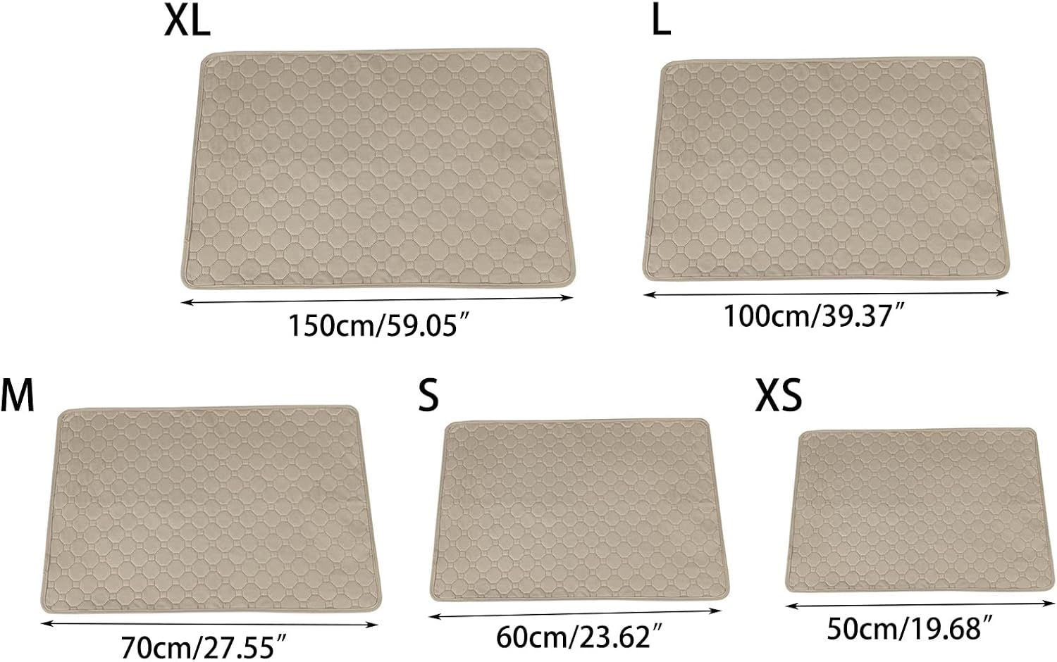 Washable Dog Pee Pads Non Slip Dog Floor Mats Great Absorption Reusable Puppy Potty Training Pad For Dogs PlaypensFeatures:and SUPER ABSORBENT: The surfaces is moisture-wicking fabric, which can quickly achieve the purpose of moistures absorption and quick drying. The thick, high-density absorbent layer locks in more moistures without worrying about leakage. Keep the bottom dryness, providing pets a comfortable resting environment BOTTOM: There are many rubber grips on bottom of dog pee pad, that keep dog pads stay in place.WASHABLE: Washable pads can be washed and are easy to which is hand or washing machine.MULTI-USE: This reusable dog potty pet training pads can be used in dog playpens, kennels, under food and water bowls, under cats litter boxes. It is helpful to protect our floors, sofas and furniture from being damaged. Can also be used for car and travel, protecting car seats and car trunks.REUSABLE: Reusable dog pads can save money, save space, and reduce waste.Specifications:ClothColor: Gray/KhakiSize (Approx.): X Small Small L XL XS-50x35cm 19.68x13.78in S-60x45cm 23.62x17.72in M-70x50cm 27.56x19.68in L-100x70cm 39.37x27.56in XL-150x90cm 59.05x35.43in Weight (Approx.): XS-100gS-150gM-200gL-360gXL-720gPackage Includes:1 Piece Washable Pee Pads for Dogs (Gray/Khaki, X Small Small L XL Note 1.Please allow 0-1cm error due to manual measurement. pls make sure you do not mind before you bid.2.Due to difference between different monitors, the picture may not reflect the actual color of the item. Thank you!