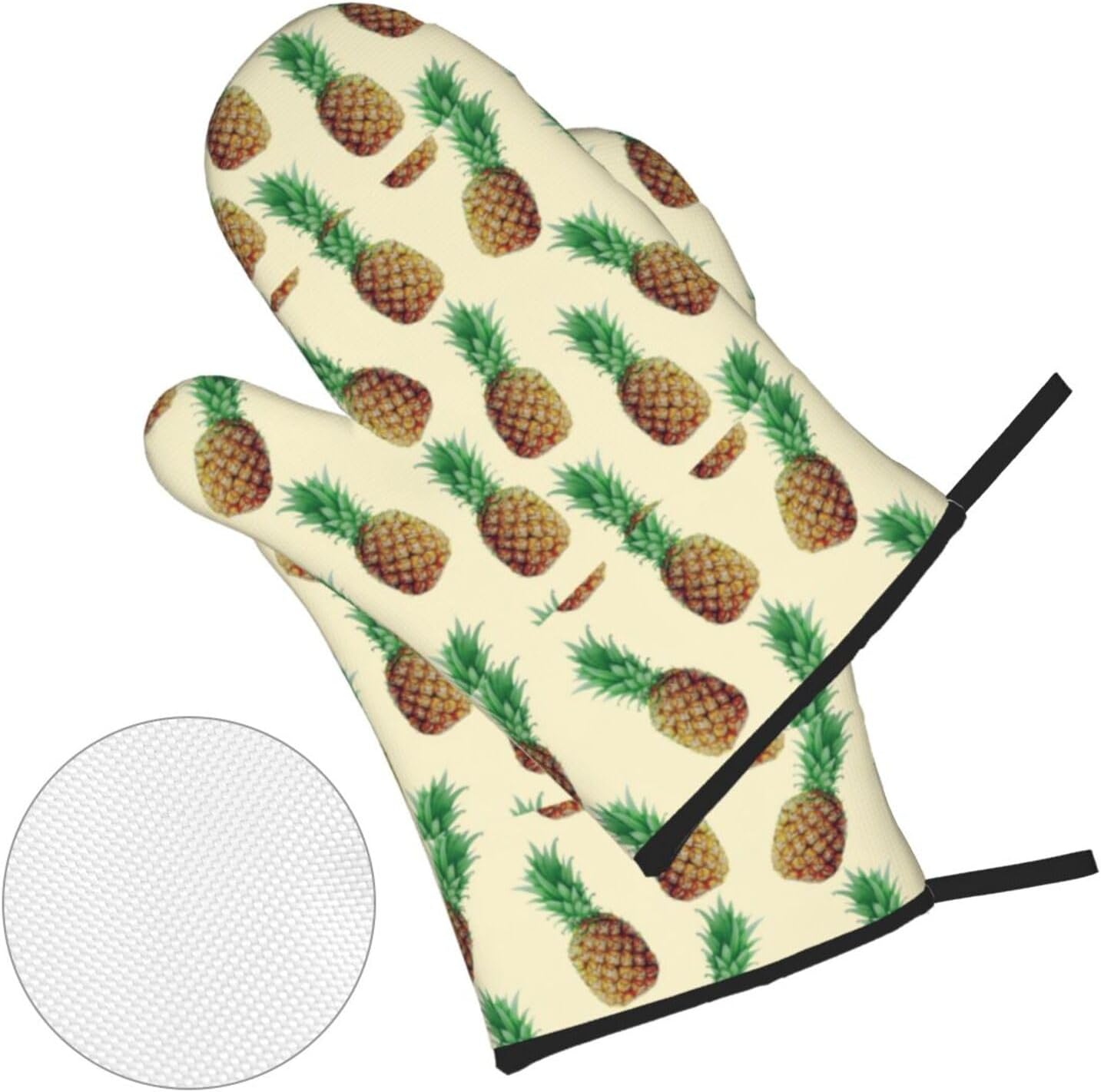 Discover the ultimate blend of functionality and style with our Pineapples print heat-insulating gloves, crafted from premium polyester and heat-insulating fabric. These gloves are not just any ordinary pair; they are a must-have for your kitchen and outdoor grilling adventures. With a finely crafted design, they offer a thick, durability layer of protection against heat, making them your go-to for handling hot kitchen lids, microwave ovens, ovens, and more. The innovative side hanging rope design ensures easy hanging and storage, adding convenience to your daily routine. Whether you're a culinary enthusiast or a weekend grill master, these gloves are designed to meet your needs, offering a unisex appeal that suits everyone. Elevate your kitchen game with our heat-insulating gloves, where quality meets practicality. Fit for those who value both form and function in their kitchen essentials