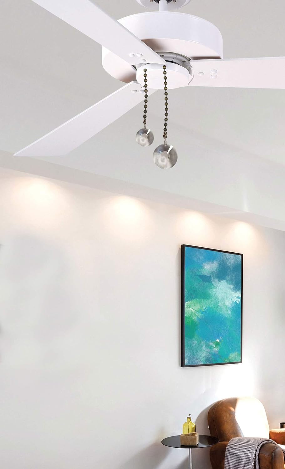 Royal Designs fan pull chain Crystal Ball Pendant Design set is the perfect addition to your ceiling fan! Conveniently adjust the settings of your ceiling fan and light with our fan pull chain set. Simply pull the chain to turn your fan and/or light on and off. These fan pull chains have a Chrome Brass finish and are coated with protective Lacquer to protect against discoloration and tarnishing. Customize an existing fan or fixture in your home. Beautify the interior environment for your homeCan apply to ceiling fan chain, celling light etc.Easy to fit