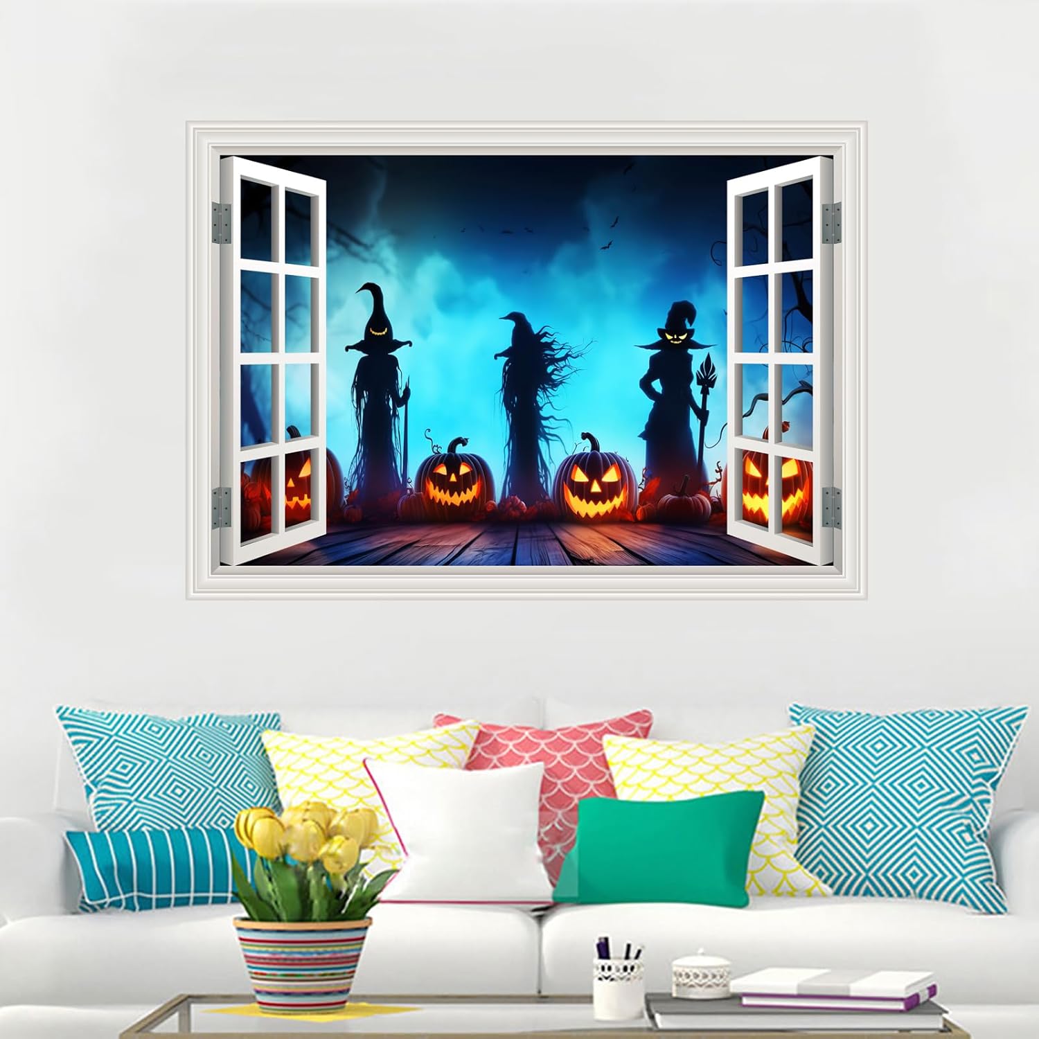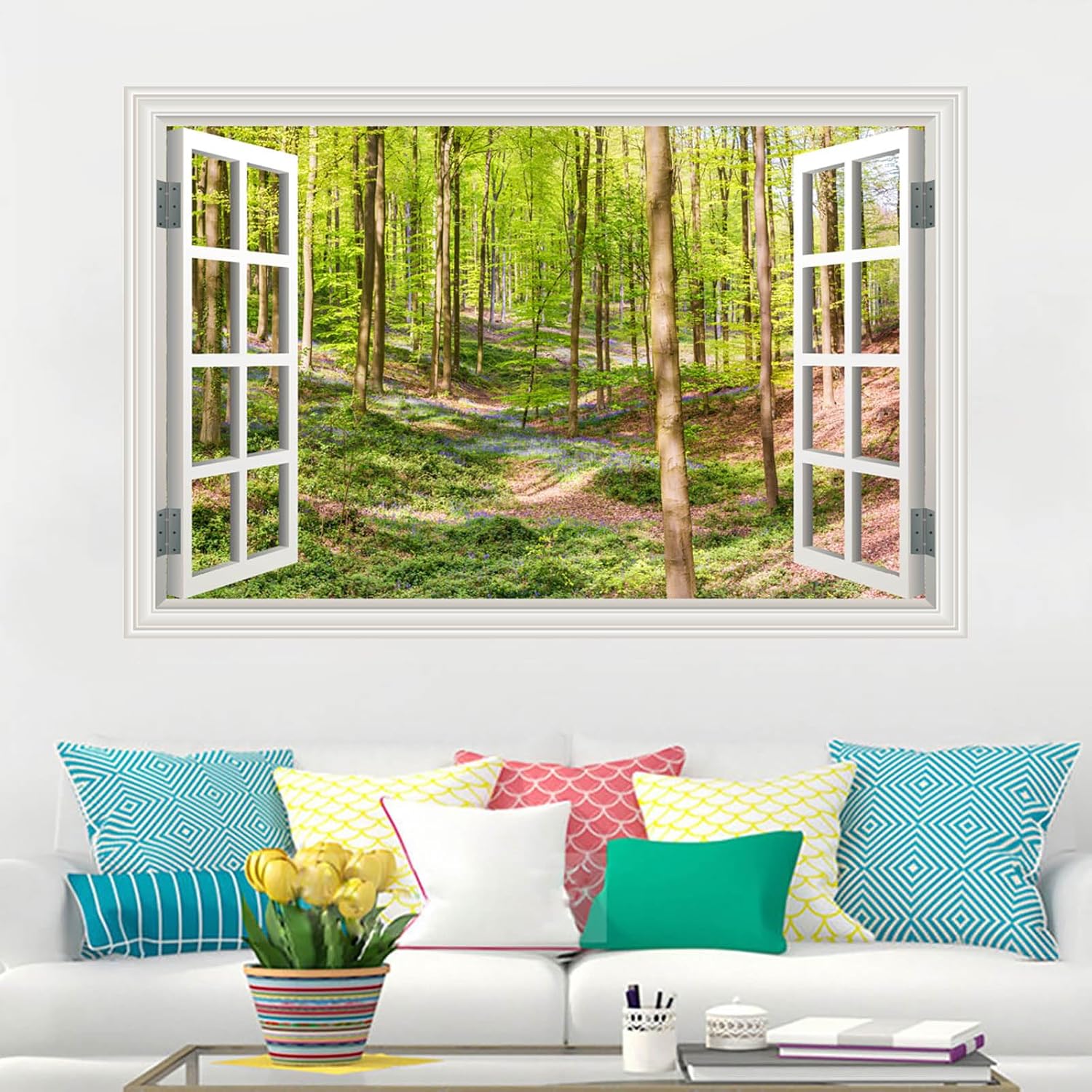 Eye-catching design with beautiful landscape, add fun to busy urban life. Removable, waterproof material, easy to install. Removable self-adhesive Canvas material wall decal Fake window mural wall sticker are peel and stick without causing any damage to your wall or other surface.Canvas Wall Decals is a hot Home decor to decorate the walls in your home, office or any other place where you want to add a special and unique decoration touch.