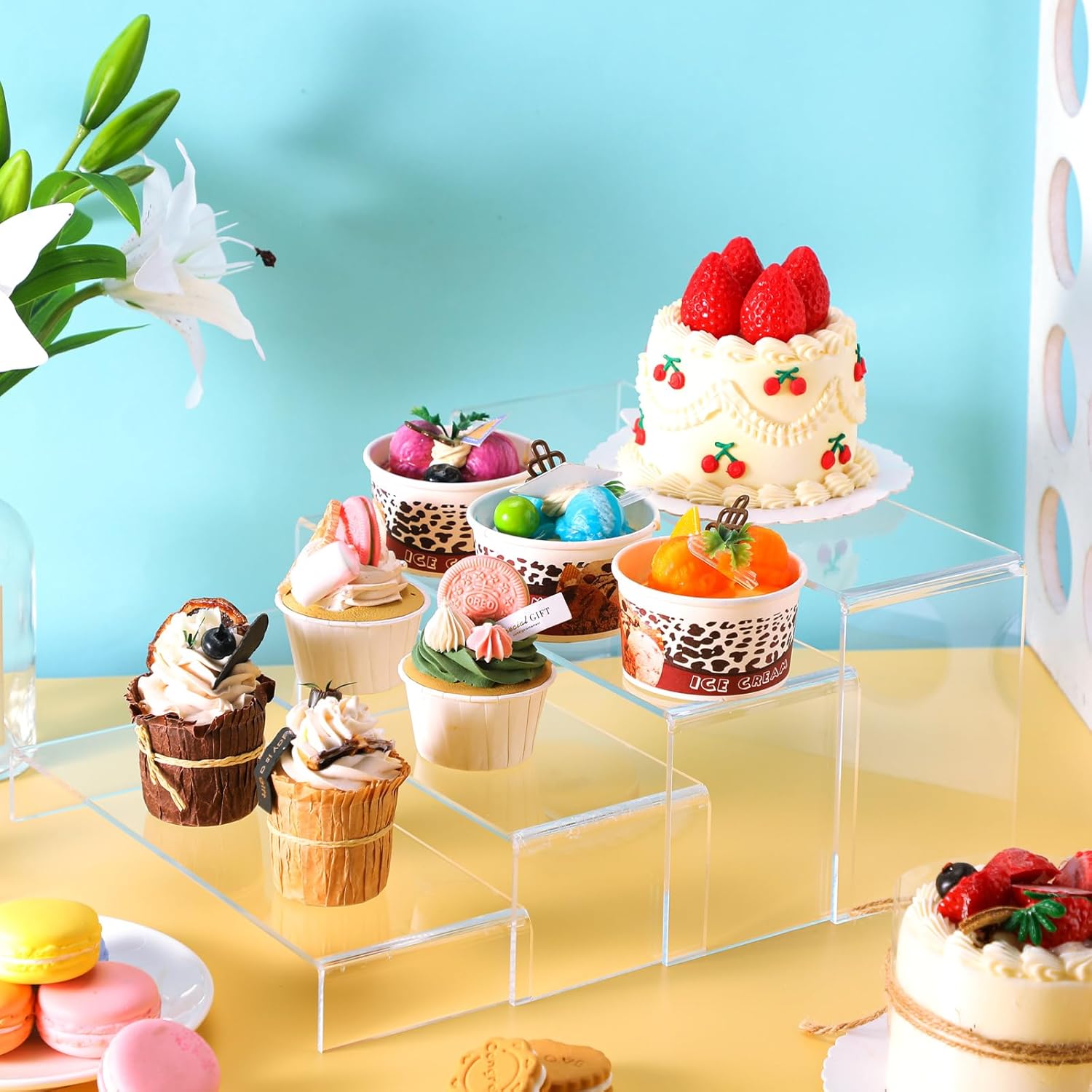 Features: The different sizes of these acrylic stands for display enable them to be applied in combination as per your creative inclination. They can be arranged in various ways to create a captivating display, providing a platform to showcase your decorating prowess. These acrylic shelves display make for an ideal gift idea. Their broad usability and aesthetic appeal make them a popular choice for gifts among friends and family who love displaying their collections or merchandise efficiently and stylishly. Specifications: Material: acrylic Color: clear Size: approx. 12.5 x 4 x 6 inches/ 31.7 x 10 x 15.2 cm, 12 x 4 x 4.5 inches/ 30.5 x 10 x 11.5 cm, 11.4 x 4 x 3 inches/ 29 x 10 x 7.6 cm and 11 x 4 x 1.5 inches/ 28 x 10 x 3.8 cm Package includes: 8 Pieces of acrylic display risers Notes: Manual measurement, please allow slight errors on size. The color may exist a slight difference due to different screen displays.