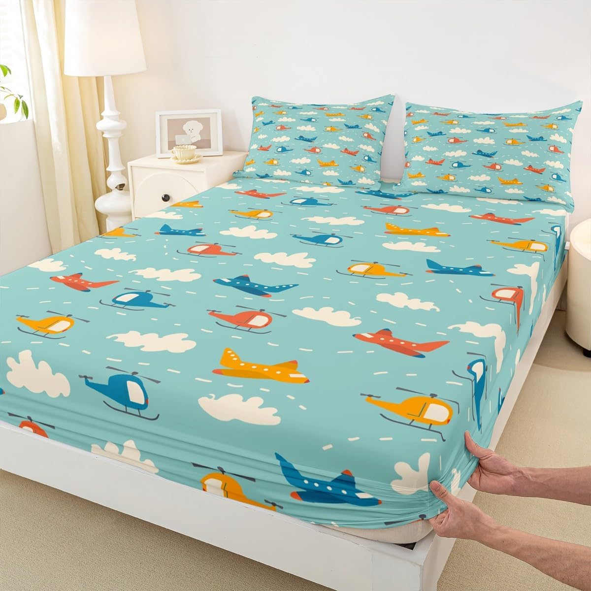 Package Include: Fitted sheet and Pillowcase, our high quality designs match any decor. High quality Fitted Sheet Set 3D Pattern Bedding Set, simply decorating your rooms any time you want, bringing you fresh feel for year round use. Size Information: Twin size 2pcs Fitted Sheet set: 1 Fitted Sheet 39"W x 75"L x 16"H, 1 pillowcase 20" x 30" Full size 3pcs Fitted Sheet set: 1 Fitted Sheet 54"W x 75"L x 16"H, 2 pillowcase 20" x 30" Queen size 3pcs Fitted Sheet set: 1 Fitted Sheet 60"W x 80"L x 16"H, 2 pillowcase 20" x 30" Personalize your bedroom: Beautiful design and colorful print, makes your bedroom unique and brings you a wonderful dream. Washing instructions: Machine wash separately in cold water,hang dry, do not bleach. Occasion: The soft Fitted Sheet bedding sets designed for Children ,Adult, Men, Women, Teens. This Fitted Sheet set is also suitable for full seasons, Spring, Summer, Autumn and Winter.