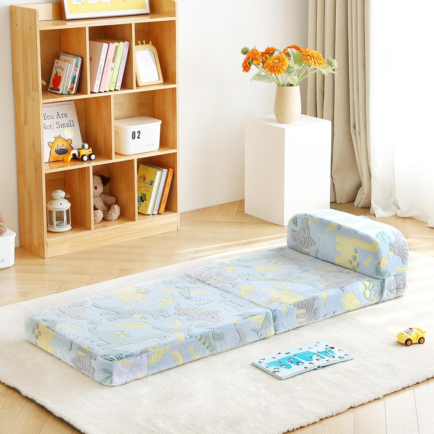 • Tips: When you receive the floor toddler bed, it may have wrinkles due to being compressed for shipping, but you can either wait 3-4 days for it to regain its original shape naturally or use a clothing steamer to quickly restore its thickness and remove creases. If you need to lean on the back of a chair, lean against a wall for support.