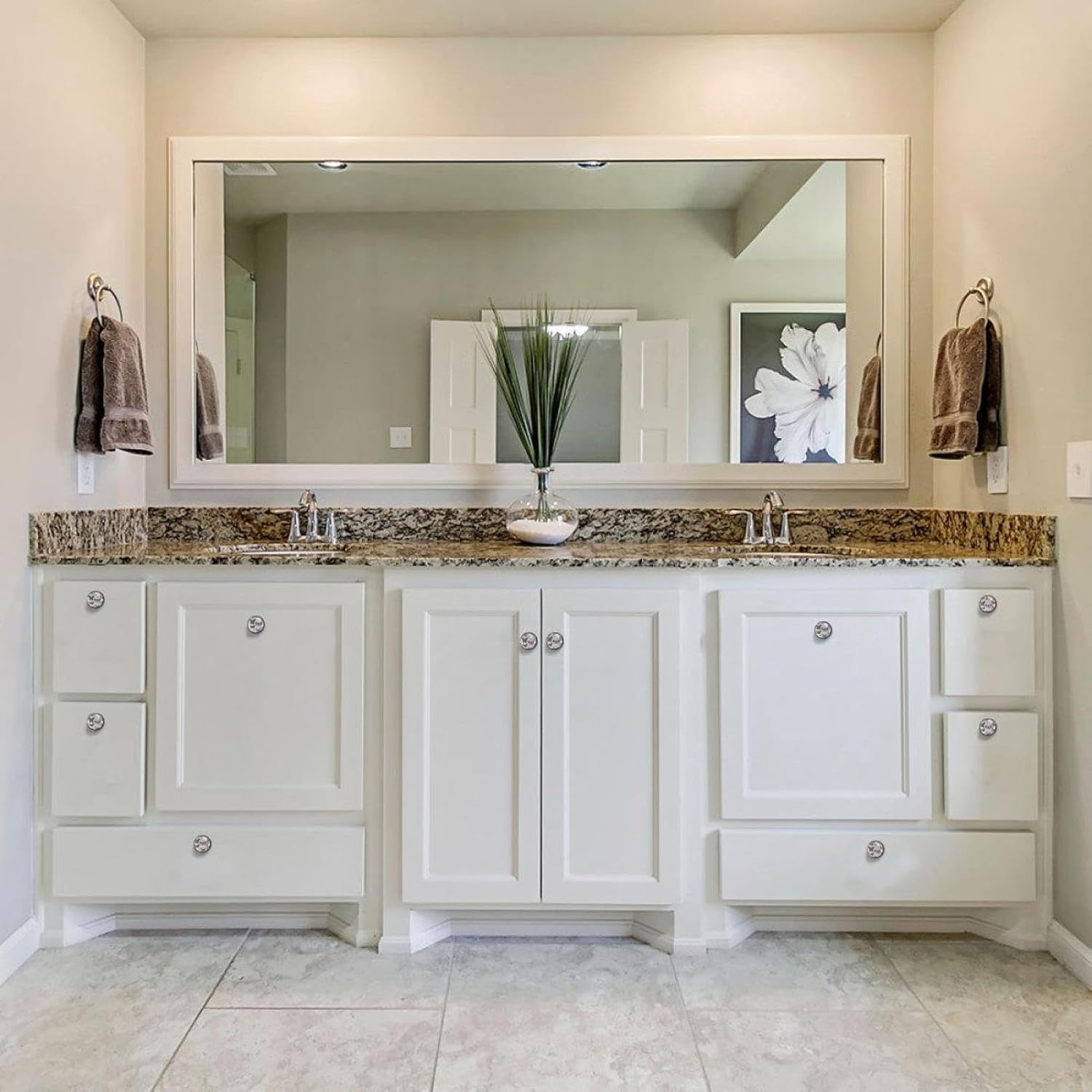 Make your home a sparkly new look with the help of our unique cabinets knobs!Our pull handles provide an easy but unique way to renew your furniture, keeping your home furniture always being stylish and modern.Product Introduction:1. Material: Crystal glass + black ABS handle, long-lasting hardware.2. Shape: Round mushroom design, looks cute and easily match any home furniture.3. Size: 1.37 x 1.10 x 0.66 IN/35 x 28 x 17MM. Two lengths of screws are available for you. Short 0.8x2.8CM/0.31x1.1IN, Long 0.8x3.5 cm/0.31x1.37 IN. You can choose the appropriate length according to the thickness of the furniture.4. Decorative Appearance: No matter you like cute, funny or art patterns, our store ensure that everyone can find his/her favorite drawer knobs.ApplicationOur drawers knobs are ideal for drawers, closets, cabinets, dressers, bookcases, jewelry boxes, wardrobes, cupboard, etc., help you easily open and close drawers. It can be used in many places, such as kitchen, bedroom, bathroom, living room, nursery, etc.Package Included12 X Drawer Knobs Handles, 24 X Stainless Steel Screws (12 short+12 long), and the pulls are easy to install, just remove the crystal glass drawer handle, put the screws through the furniture to be installed and tighten them.