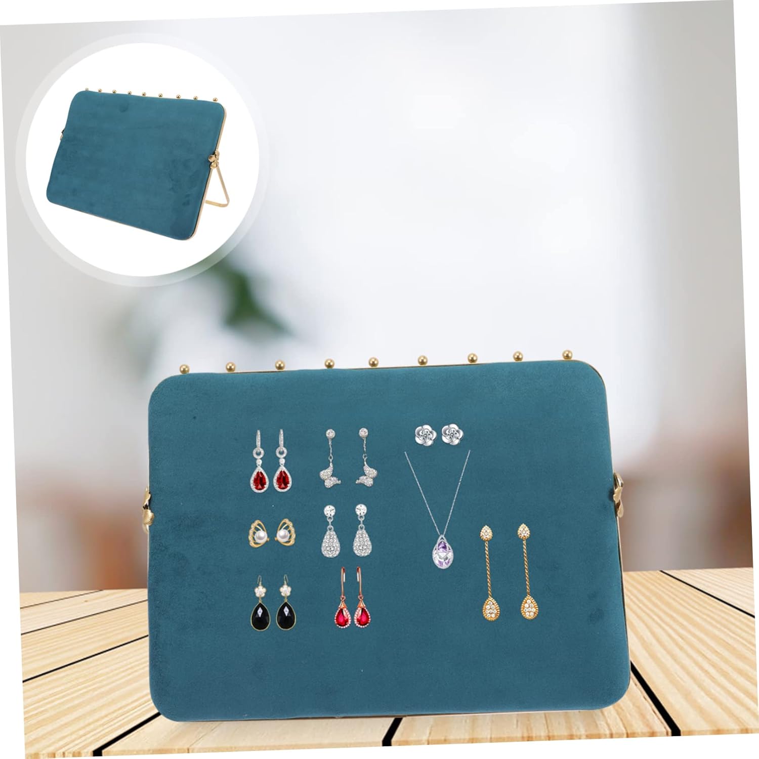 Package List 1 x Jewelry Display Rack Characteristics -Product Info:Jewelry display stand - Color: Green jewelry holder. - Size: 35.00X25.00X2.50cm/ 13.76X9.82X0.98inch jewelry storage rack. - Material: Alloy + Sponge earring display holder. - Display and store jewelry is clear , which is convenient to find and take jewelry earring holder. - This jewelry display stand can help you organize your jewelry and make your desktop neat earring holder. - Suitable for many kinds of jewelry's displaying and storing, such as earrings and necklace Earring Storage Rack. - It is made of velour fabric, which prevent your jewelry from scratches and damage necklace display. - It is a great those people who like to collect jewelry,has a jewelry store and etc earring display stands.Goods Descriptionearrings holder for It is very beautiful and charming, which can attract people attention easily.earring holder It is specially designed to place your favorite earrings and necklace.earring tray No longer need to find your jewelry everywhere.earring stands This is a jewelry display rack for storing and displaying jewelries