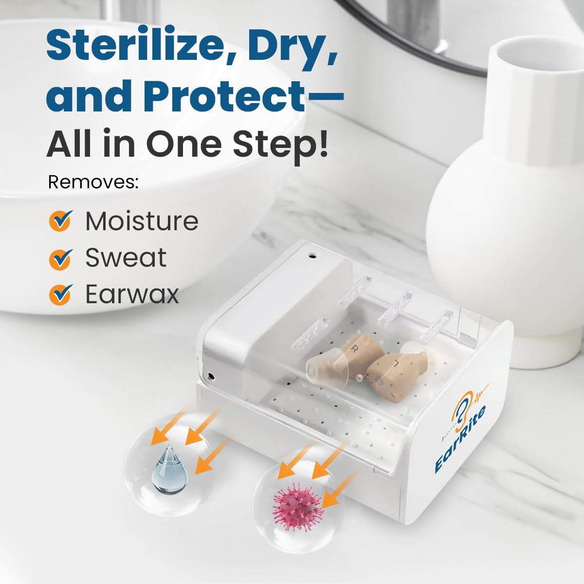 Protect Your Hearing Aids from Moisture and Ear Wax Your hearing aids and other small electronics are essential tools in your daily life, but exposure to moisture, dust, can cause them to malfunction. Our Electric Dehumidifier & Dryer is specifically designed to combat these issues, offering a convenient, effective solution to keep your devices clean, dry, and working like new. Designed with Hearing Aids in Mind While this dehumidifier can be used for other devices like EarPods and earbuds, it’s been engineered with hearing aids at its core. It provides an optimal drying environment that removes harmful moisture that can damage delicate internal components, degrade sound quality, and shorten the lifespan of hearing aids. Regular use can keep your hearing aids in peak condition and provide peace of mind. Quiet, Automatic Operation The dehumidifier operates quietly and automatically, making it easy to use daily without any disruption to your routine. Simply place your hearing aids or small electronics inside, and the device takes care of the rest. It's as simple as that! Compact and Portable Whether you're at home or on the go, our dehumidifier is the perfect travel companion. Compact and lightweight, it fits easily into your bag or carry-on, ensuring your hearing aids stay protected wherever you are. Compatible with Other Devices Though primarily for hearing aids, this dehumidifier is versatile enough to care for other moisture-sensitive devices like EarPods, wireless earbuds, and even small gadgets. With this device, you can safeguard a range of electronics from the damaging effects of moisture, dust,