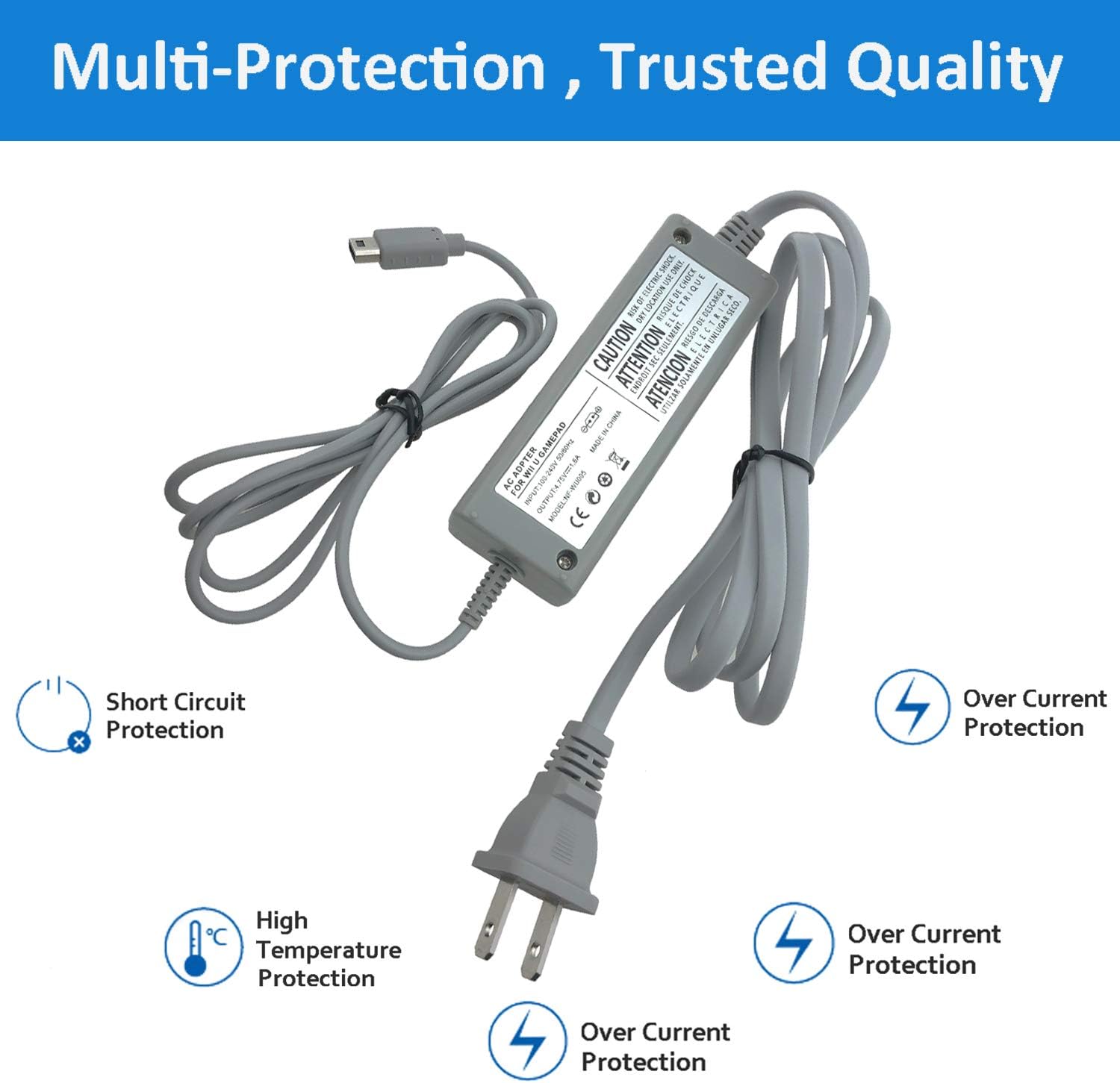 Specification:Input - AC 100-240V, 50-60HzOutput - DC 4.75V 1.6AConnector - USB ConnertorColor: GreyCompatible Model:Replacement for Wii U Nintendo GamePad WUP-010Package includes:1×AC Power Adapter for Wii U Product Warranty:NATNO products have 30 days money back and 12 months exchange warranty.