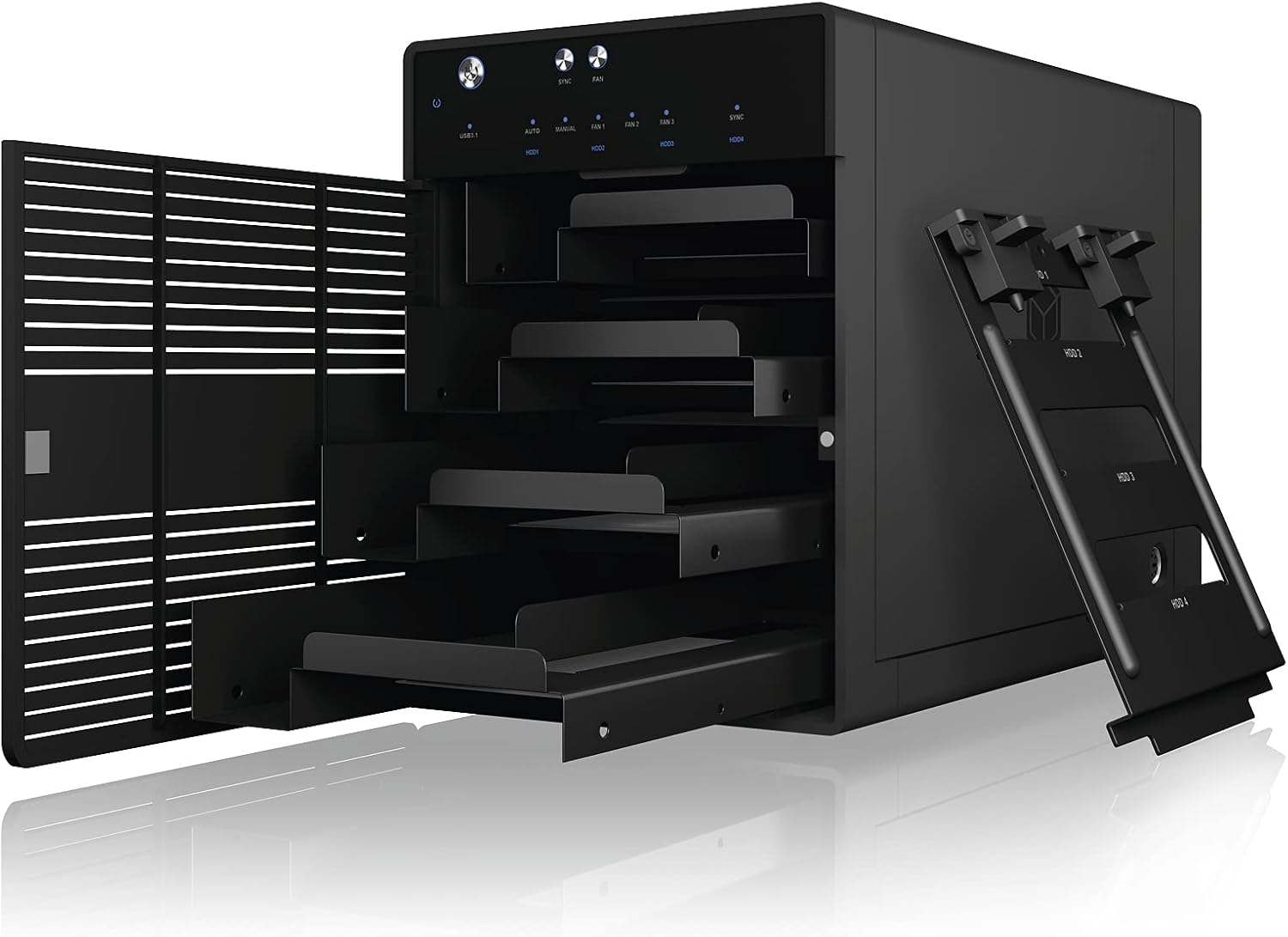 Cool USB Type-C storage solutionThis external storage enclosure accommodates up to four 2.5" or 3.5" drives. A robust aluminium body allows efficient heat dissipation, and the temperature-controlled fan on the rear ensures that drives stay cool during long hours of operation. There is no function, although everything is connected: to avoid possible problems, you can do some quick tests. You can test if the following components are working properly and are not the cause of the problem: - Cable; - Hard disk / SSD; - Enclosure. To test your components: - Use the cables, hard drives and enclosures of another system to determine if your system is the cause of the problem. - Use a different cable, hard drive/SSD and another hard drive enclosure one by one to determine if the problem persists. Ideally, you should test a component that you know will work in another setup.