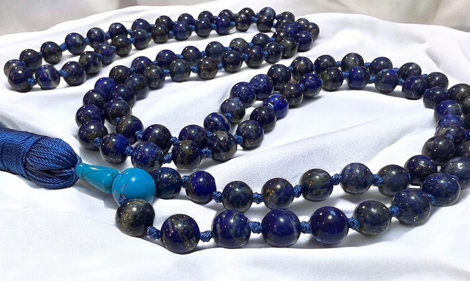 Enhance your spiritual journey with our Hand Knotted 10mm Lapis Lazuli Mala Beads Necklace. This exquisite piece is made from genuine natural Undyed Lapis Lazuli beads, each meticulously hand-knotted to ensure durability and elegance. Known for its deep blue hue and golden flecks, Lapis Lazuli is a powerful gemstone associated with the Third Eye and Throat Chakras. It is revered for its ability to enhance intuition, communication, and spiritual awareness. Perfect for meditation, prayer, or as a meaningful accessory, this mala necklace is a beautiful addition to any collection. Key Features: Premium Quality: Crafted from high-quality 10mm Lapis Lazuli beads, each with unique variations. Healing Properties: Lapis Lazuli is known for its ability to enhance intuition, improve communication, and promote spiritual growth. Chakra Association: Associated with the Third Eye and Throat Chakras, aiding in spiritual awareness and clear communication. Hand Knotted: Each bead is hand-knotted for added strength and durability, ensuring a long-lasting and beautiful piece. Versatile Use: Suitable for meditation, prayer, yoga, or as a stylish and meaningful accessory. Elegant Design: Combines the deep blue beauty of Lapis Lazuli with meticulous craftsmanship. #LapisLazuli #MalaBeads #MeditationNecklace #HealingGemstones #YogaJewelry #SpiritualJewelry #ThirdEyeChakra #ThroatChakra #PrayerBeads #HandKnottedMala #108Beads #CrystalHealing #IntuitionBoost #GemstoneNecklace #MindfulnessJewelry #WellnessJewelry #ArtisanCrafted #EnergyHealing #ChakraBalancing #NaturalGemstones #SpiritualAccessories