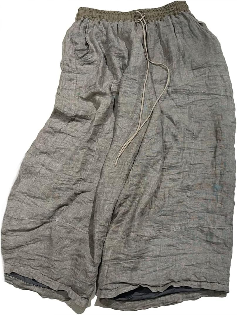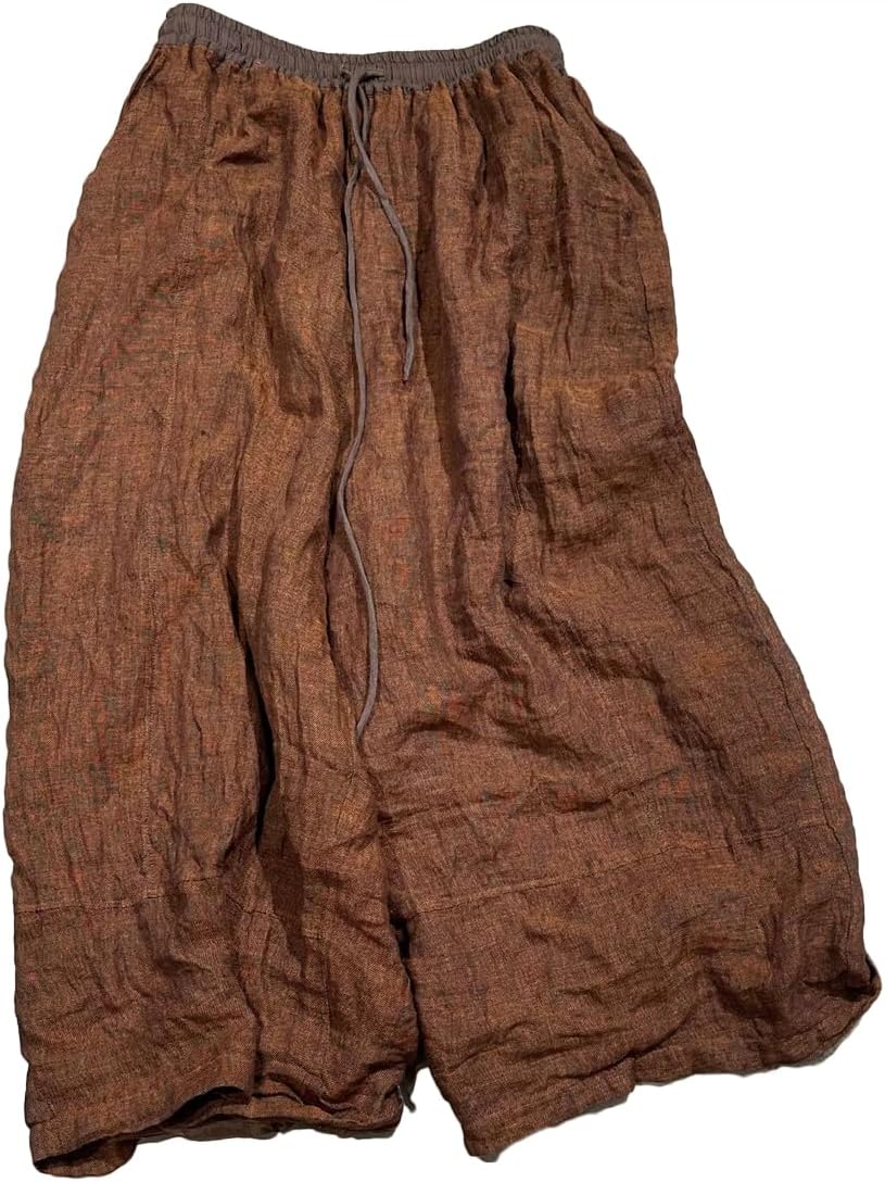 Embrace comfort and style with these casual wide-leg linen pants. The relaxed silhouette features an elastic waistband with an adjustable drawstring, allowing for a customized fit that moves with you throughout the day. These cropped trousers showcase the natural texture and breathability of linen fabric, making them perfect for warm weather and casual occasions. The loose-fitting design offers unrestricted movement while maintaining an effortlessly chic appearance. Available in versatile colors including charcoal gray and rich brown, these pants can be easily paired with your favorite tops for a laid-back yet put-together look. The cropped length adds a modern touch, while the wide-leg cut creates a flattering, flowing silhouette. The natural wrinkles in the fabric add character and a lived-in appeal that's characteristic of linen garments. These pants are ideal for casual outings, lounging at home, or creating artistically inspired everyday ensembles. The practical design includes side pockets for convenience, while the quality construction ensures lasting wear.