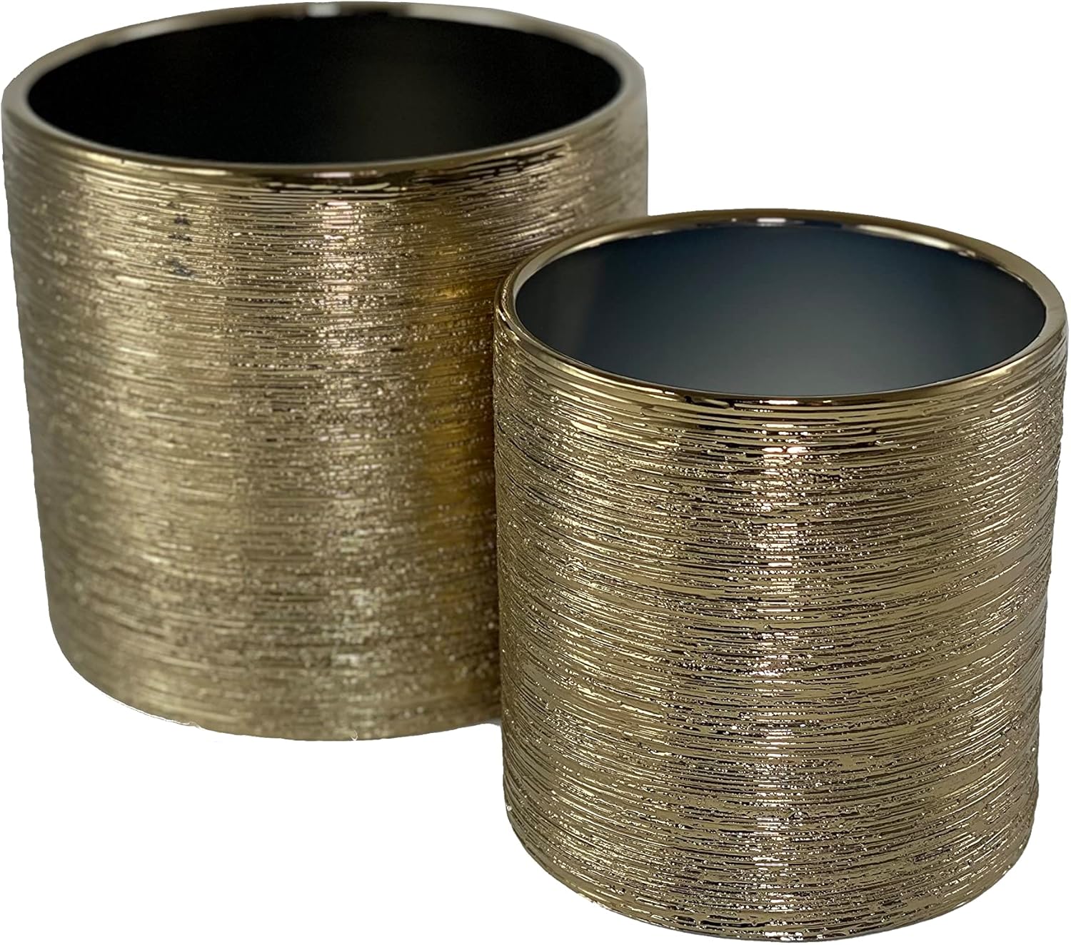 Set of 2 CalCastle Craft Gold Etched Flower Cylinder Vases Pots for House Plants and Living Room Décor