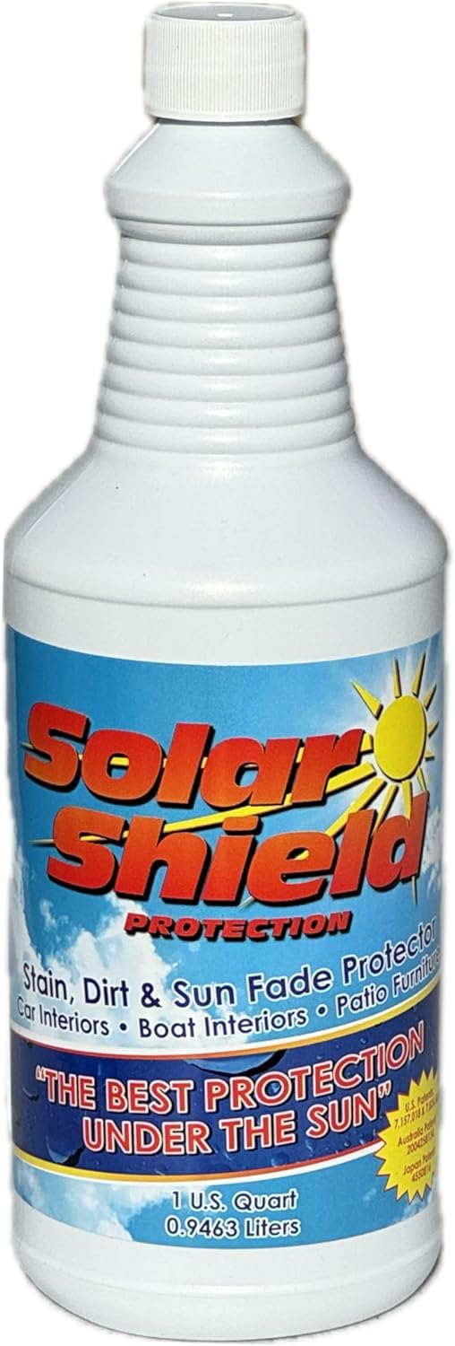 Solar Shield Protection is a revolutionary anti-aging fabric spray that provides long-lasting UV protection, water resistance, and stain resistance for indoor and outdoor fabrics. Formulated with a unique solvent-based micro-polymer, this spray works on a variety of materials including boat upholstery, auto interiors, patio furniture, carpets, and more.