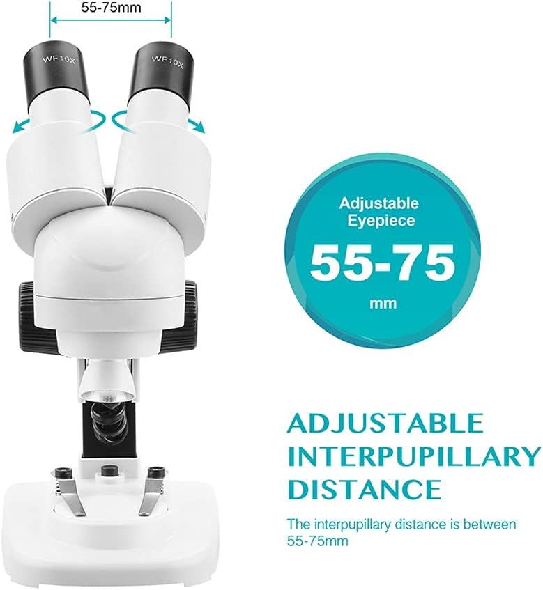 This Stereo Microscope Has Sharp Stereo Erect Image Over A Side Field View.Widely Used in Electric Factories, Laboratories, Schools, Pcb Solder and Mobile Repair etc.45 Degrees Binocular Eyepieces View , Convenient Sitting .The Interpupillary Distance is Between 50-75mm.The Working Distance About 7-11cmSpecification:Theory: Stereo MicroscopeDrawTube: BinocularObjective Lens: 2xEyepieces : WF10X / WF20XTotal Magnification: 20x / 40xTotal Magnificent 20x = (Eyepieces 10x) x (Objective Lens 2x)Total Magnificent 40x = (Eyepieces 20x) x (objective lens 2x)Top Light : LED Electrical IlluminationInterpupillary Distance: 50-75mmBatteries: 2 AA Batteries (not included)Package included:Microscope * 1If you have any questions about the product, please me, we will you within 24 hours and give you has satisfactory answers.Supports memory card insertion for taking photos and videos
