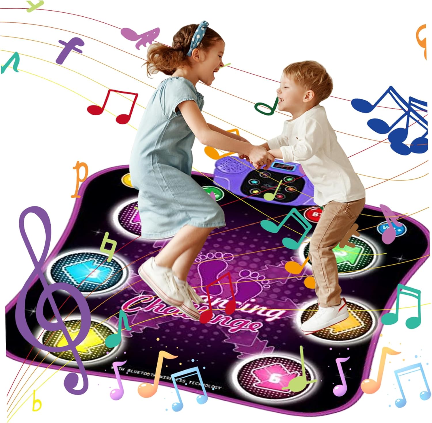 Description: The dance mat for kids is a 6 key dual horn LED dance pad with digital display and multi-mode capabilities. This BT-compatible dance mat provides a fun and interactive way for kids to enjoy dancing and music. With multiple modes to choose from, children can dance to different styles and challenges, improving their coordination and rhythm. The volume adjustable feature allows parents to control the sound level, ensuring a comfortable dance experience for kids. Battery-powered and portable, this electronic dance mat can be used anywhere, making it a versatile and convenient entertainment option for children. Let your kids dance to their favorite tunes and have fun with this engaging and exciting dance mat. Features:. Dance Mat. -Color: As Shown. -Material: Plastic, Rubber. -Size: about 90x80cm/35.43x31.50inch. Note: Manual measurement, please allow slight errors on size. The colors may exist slight difference due to different screens. Package Including 1 x Dance Mat.