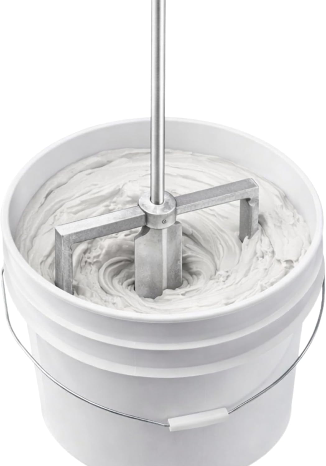 The Bon 15-189 Cast Head Express Mixer - 30" with 9 5/8" x 6 1/4" Paddle is designed for efficient mixing of drywall mud, acoustic materials, and premix compounds. The large paddle size ensures consistent blending, helping eliminate lumps and improve material consistency. With a 30" length, this mixer is ideal for use in 5 to 50 gallon drums, making it suitable for a wide range of jobsite applications. The one piece aluminum alloy cast head provides durability and strength for long lasting performance. Built for contractors and professionals, this mixer delivers reliable results for demanding mixing tasks.