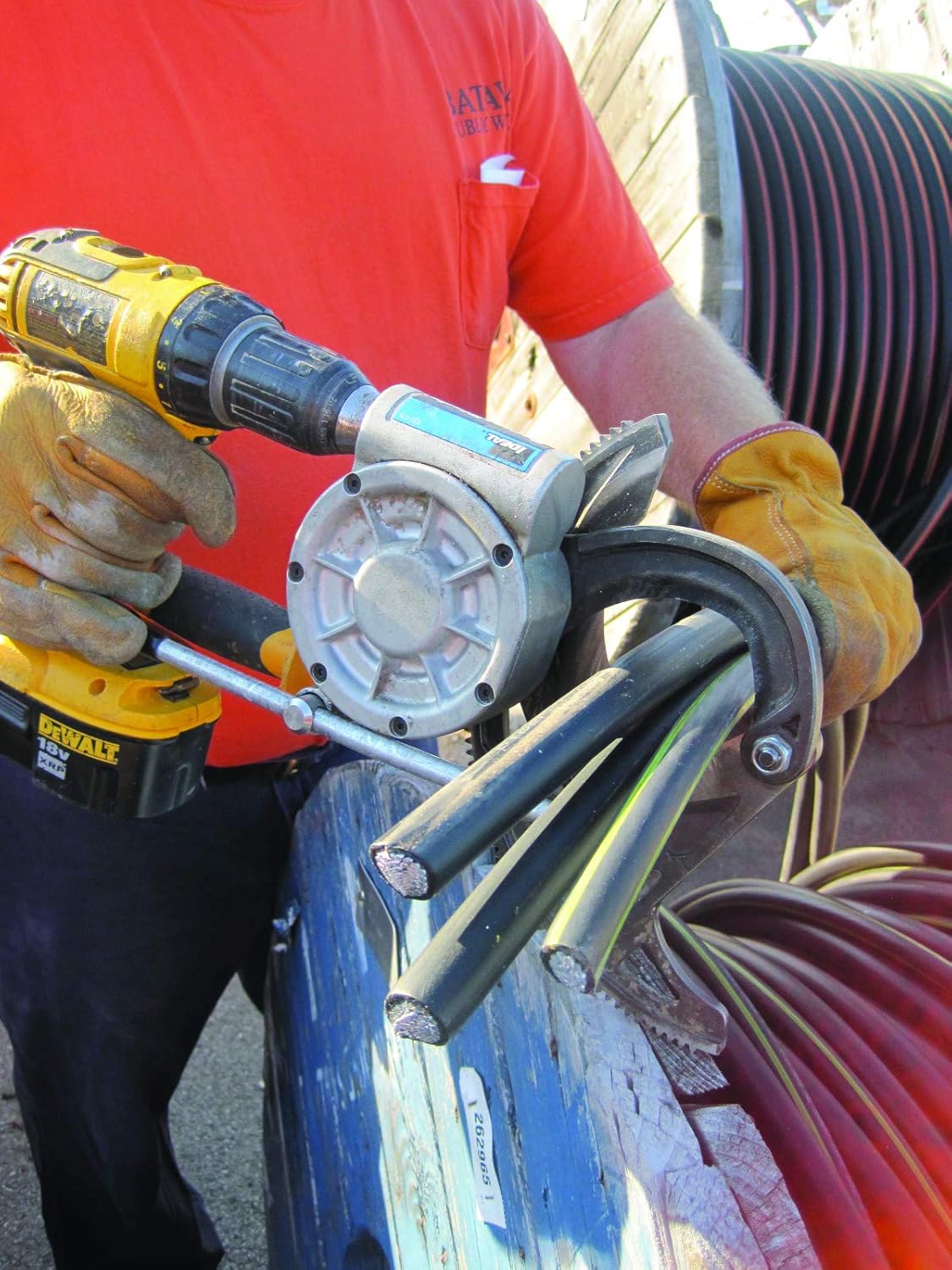 IDEAL Electrical Cable Cutter cuts hard drawn copper and aluminum. The cable cutter tool rock-solid power designed blade for precise cutting. The rounded blade design minimizes cable distortion while cutting. The industrial wire cutter is compatible with 12V or higher drills so that cutting is as effortless as pulling the drill's trigger.
