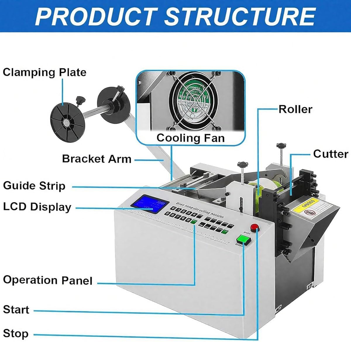 The fully automatic heat shrink tubing cutter can efficiently and accurately cut up to 3 tapes at a time, with a cutting length of 0.1-9999.9 mm and a cutting width of 4 inches/100 mm. It has a powerful 300 W motor, a cutting speed of 100-120 times/minute, and a CNC control panel to set the length, quantity and speed. It is suitable for industries such as electronics, clothing, and automotive.Specifications:Name: Automatic Heat-shrink Tube Cutting MachineBlade Material: High-Speed SteelPower: 300WCutting Length: 0.1mm-9,999.9mmCutting Width: 0-100mm/0-200mmFeeding Speed: 34m/min(Adjustable)Maximum Cutting Diameter: 11 mm / 1/2 inchFeeding Roller: PU or Silica-Gel(According to the Material)Cutting Speed: 100-120 cut/min(50mm)Item Dimension: 450×310×310mmNet Weight: 28kgPackage Included:1 X Host and Accessories1 X English ManualNotes:1. Please allow the slight color difference caused by the shooting light and 1-3cm error due to manual measurement.2. If you have any questions please contact me and I will reply you within 24 hours