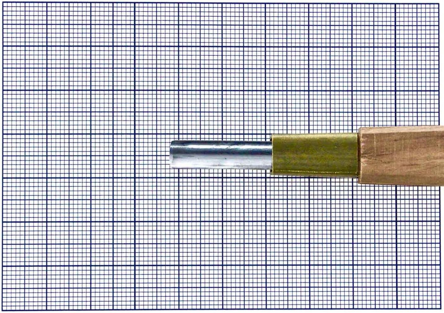 This outstanding wood carving tool is excellent for wood block carving (Mogu Hanga) as well as many other wood carving projects. The blade's length is especially long, as it can be extended by adjusting through the handle. This makes the tool last much longer, making it fantastic for its value. The Deep Circle U gouge is great for creating channels or 'flutes', as well as rounding out edges for a clean final project. The blade's size also makes detail work a breeze, allowing for intricate designs and more interesting features. To adjust the blade, simply remove the bolster gently from the handle with pliers or similar implements and pivot the top half of the handle on the hinge pin until the blade and shank is fully exposed. Remove the blade and shank from the handle by lifting it directly upwards, freeing the shank hook from the wood. Sharpen your blade on a suitable whet stone. Replace the blade into the handle channel either with the hook placed in the original hole it was unseated from, or move the blade to a higher position in the handle as the blade is ground down. Please note the blade should be moved up the handle in one centimetre increments to prevent too many anchor points in the wood being made, which may weaken it. The handle will compress the blade providing friction which should help keep it in place, adhesives or lubricants are not recommended as this may affect the functioning of the tool. To prevent hook deformation, excessive backwards pressure should not be exerted on the front of the blade, should the hook become deformed and no long hold the blade in place and cannot be corrected, please contact the manufacturer for a replacement. Approximate dimensions: Handle length (not including bolster): 9cm Handle width (widest point): 1.5cm Handle width (narrowest point): 1.0cm Bolster length: 1.8cm The background grid in the picture is in square millimetres.