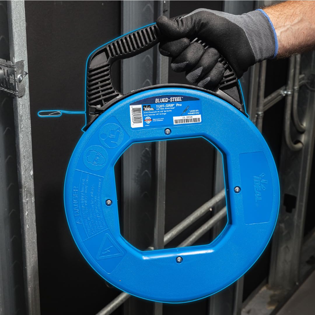 IDEAL Electrical Blue Steel Fish Tape is designed for industrial use for long conduit runs. The conduit tape has laser etched in the increment of 12 in. that provides instant conduit length. It is made from using the high-grade carbon steel that adds to its strength, enhancing its durability to ensure long term use. The cable pulling wire has a non-oily blue finish that makes it highly resistant to rust and corrosion, making it a reliable choice for heavy-duty electrical set up. It is straight and stiff that keeps it securely held in its case even after a long fall.