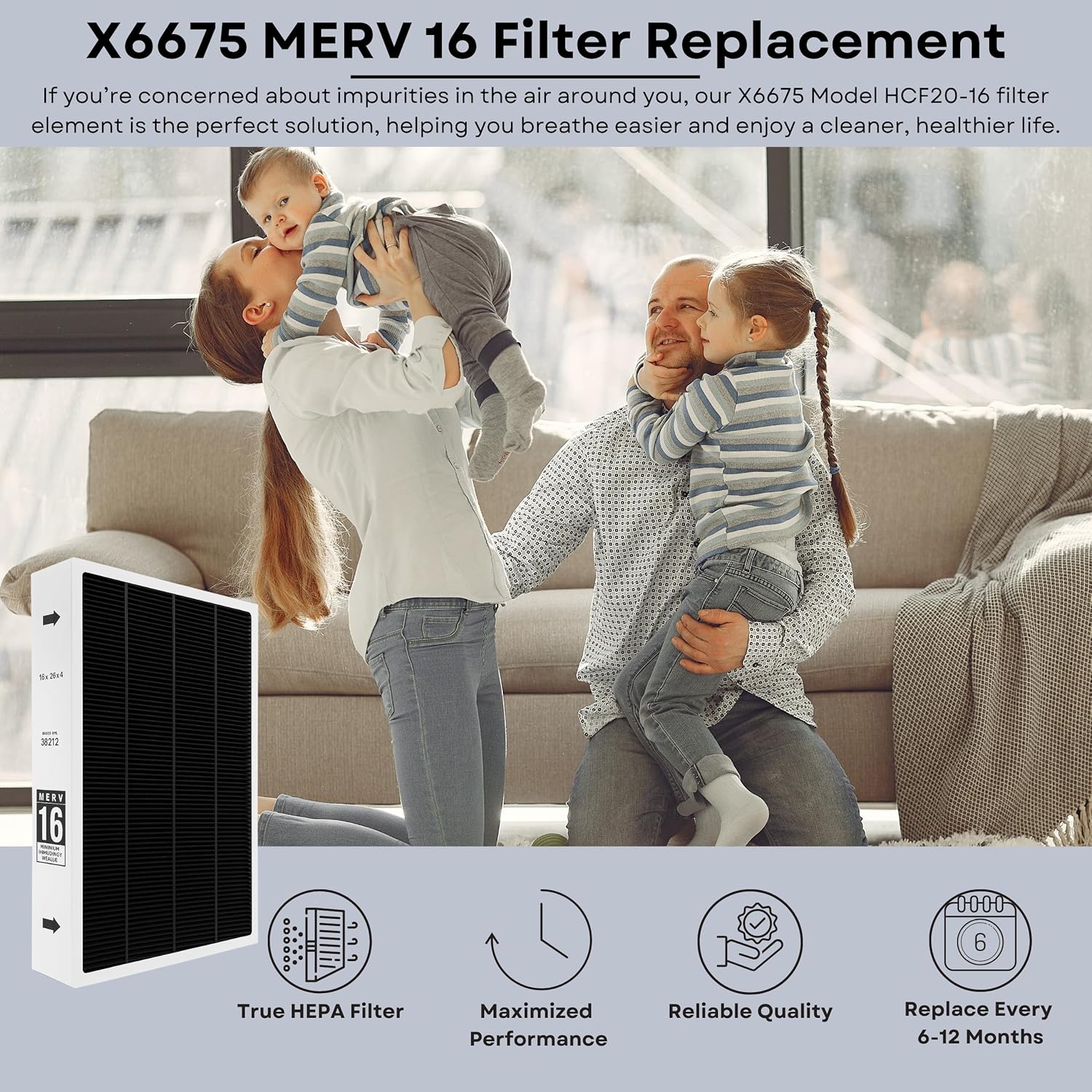 Nispira MERV 16 X6672 Furnace AC HVAC Air Filter Replacement Compatible with Lennox X6672 and HCC16-28 Carbon Home Furnace Filter for HVAC System. 1 filter included. Normal Size: 16" x 25" x 5".