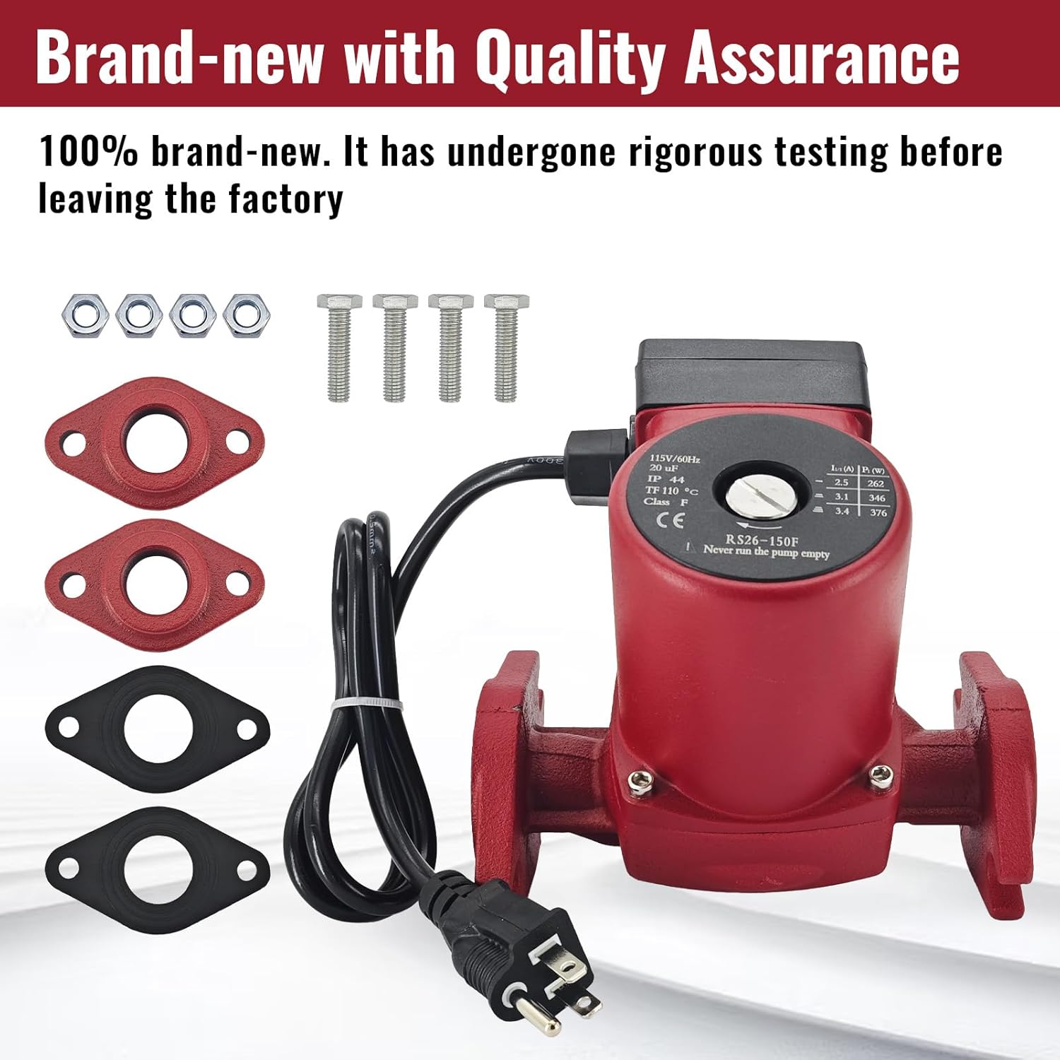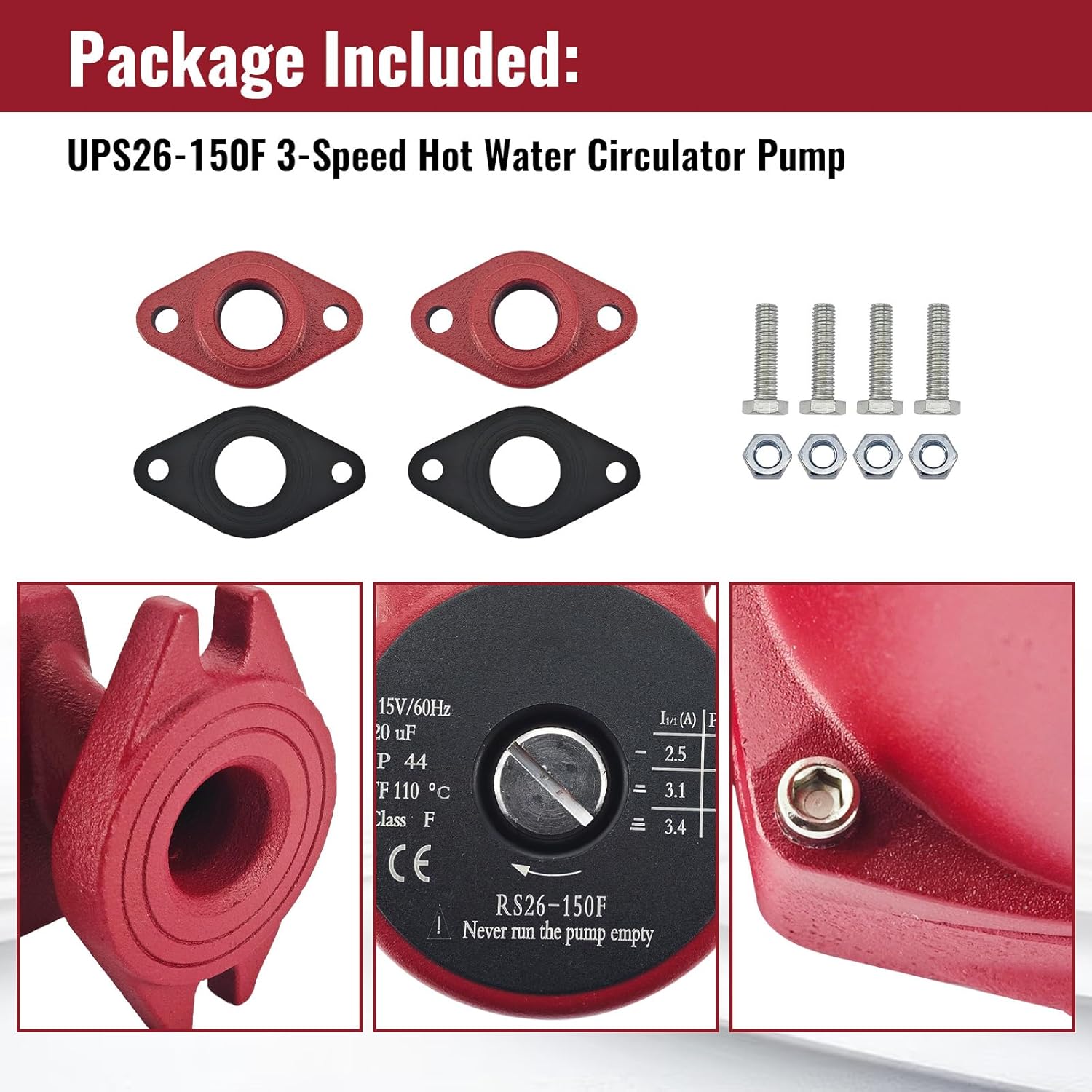 | Included Components | UPS26-150F Hot Water Circulator Pump |