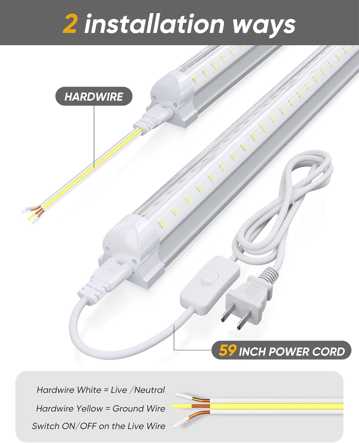 | Included Components | 4 pack LED shop light included, Connection Wire included, Connectors included, Power Cord With ON/OFF Switch included, Screws included |