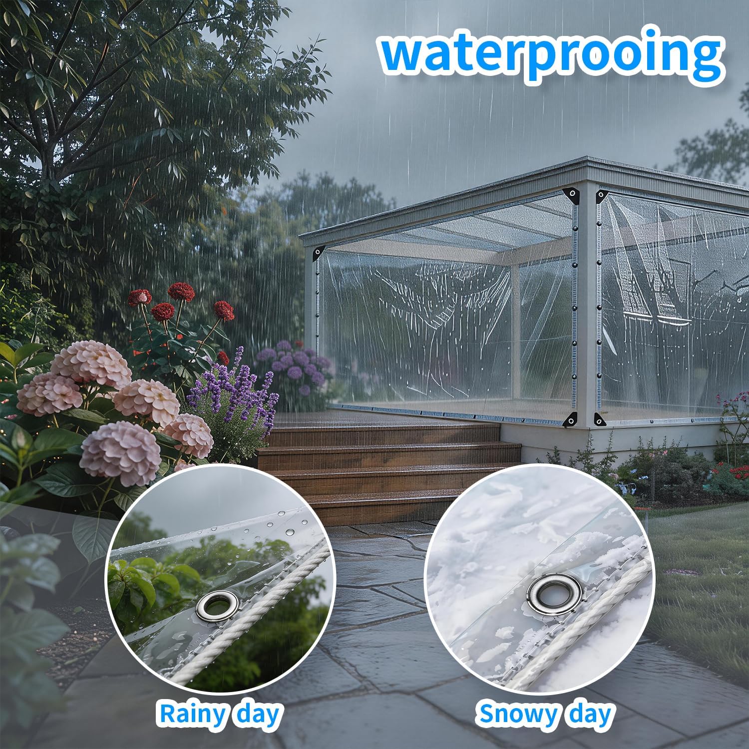 Clear Tarps PVC Vinyl Transparency Tarpaulin Glass with Silver Metal Grommets,Protects Against Water
