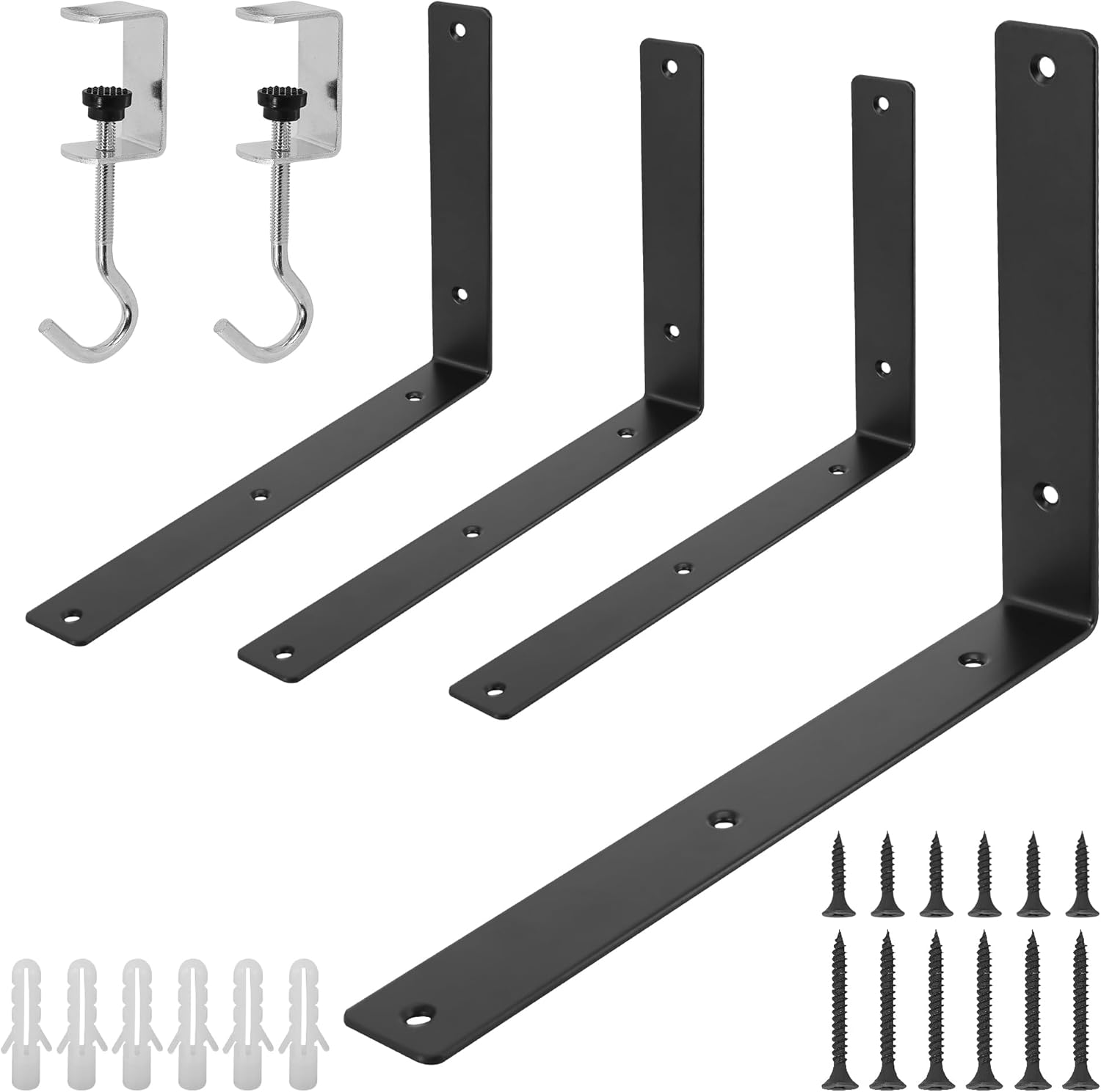 • DIY Decoration: The black appearance of the L bracket for wood is simple and fashionable, you can easily install it anywhere in the house for decoration according to your preferences, while maximizing the use of space. Combines with adjustable hooks, unlocking effortless creativity for your DIY projects