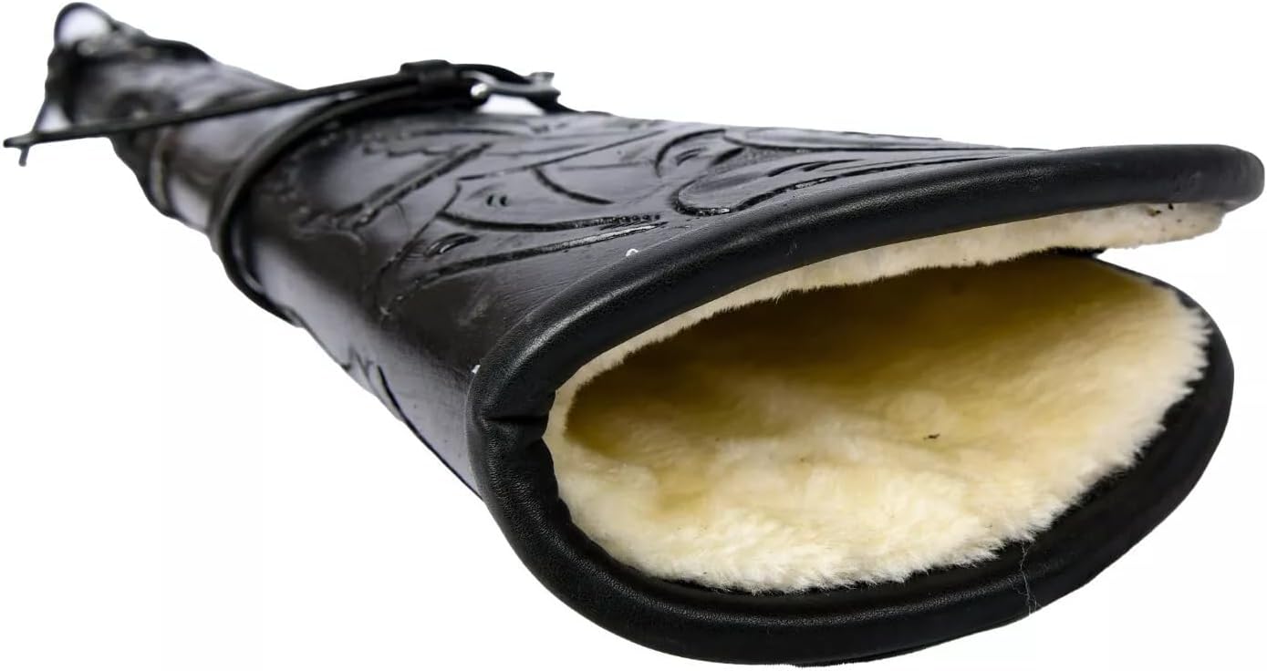 GENUINE LEATHER WESTERN HANDMADE RIFLE COVER SCABBARD SHOTGUN RIFLE GUN COVER GENUINE LEATHER: Our rifle scabbard made from genuine full grain buff leather harness, with durable stitching for long service. Due to the handmade nature of leather shotgun scabbard there will be some variation in color and tooling. HIGH QUALITY MATERIAL: This hand tooled rifle scabbard/ breaching shotgun scabbard is constructed from using metal buckle and leather strap make it easy to attach to the saddle or a more modern day conveyances. DIMENSION: Height: 33”, long width 7” at widest, tapering to 2.5” at tip. Lever action rifle scabbard is Lined to kept your prized possession carefully cradled, scratch-free and protected from the elements. HAND CRAFTED: Rifle scabbard is a handcrafted item no two are exactly the same. Each henry rifle case or leather rifle scabbard is created individually with natural imperfections that enhance character and appearance of the rifle scabbard. EXQUISITE GIFT: You can gift leather scabbard for lever action rifle tooled rifle scabbard or shotgun scabbard to your loved ones and friends. Our products come in secure packaging and high grade materials can show your taste. The rifle scabbard is a handcrafted item made of genuine full-grain buff leather harness, with durable stitching for long service variation in color and tooling. The rifle scabbard is constructed using a metal buckle and leather strap to make it easy to attach to the saddle.
