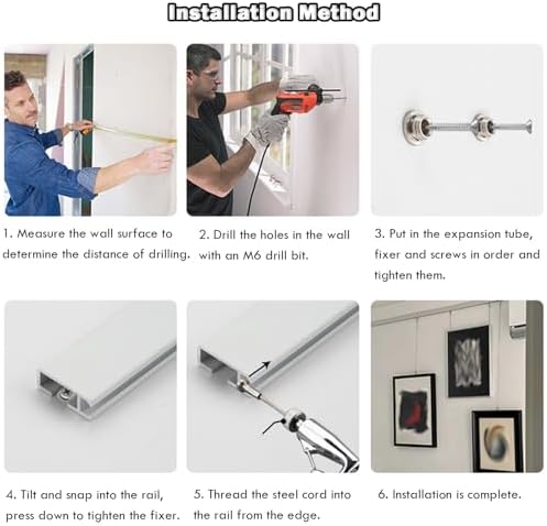 Elevate your home or office decor with our versatile aluminum picture hanging system, designed to enhance any space while providing a practical solution for displaying your favorite artworks and photographs. With a robust track length of 1.5 meters (59 inches) and a remarkable load capacity of 120 kg (264 lbs), this system is ideal for creating stunning gallery walls in your living room, hallway, or even in professional settings like galleries and museums. Our picture hanging kit features adjustable slide hooks that can support up to 30 kg (66 lbs), allowing you to easily rotate and rearrange your displays without the hassle of traditional wall mounting. This not only protects your walls from damage but also lets you change your decor according to the seasons or special occasions. Whether you’re showcasing family photos or professional artwork, you can hang multiple frames on a single cord, with the flexibility to adjust spacing and alignment effortlessly. Installation is straightforward, requiring minimal tools. Simply punch holes for the track, mark your wall, and secure the track in place. The included steel cords provide additional strength, ensuring your frames stay securely hung without the worry of them falling. This user-friendly system is compatible with concrete walls in apartments and can be tailored to fit any room's aesthetic. The package includes everything you need: a durable aluminum track, two steel cords, and adjustable hooks, making it a complete solution for your hanging needs. Please note that slight measurement variations may occur due to manual handling and lighting conditions can affect the appearance of the product in photos. Transform your space into a personalized gallery with this elegant and practical picture hanging system, perfect for both everyday use and special occasions.