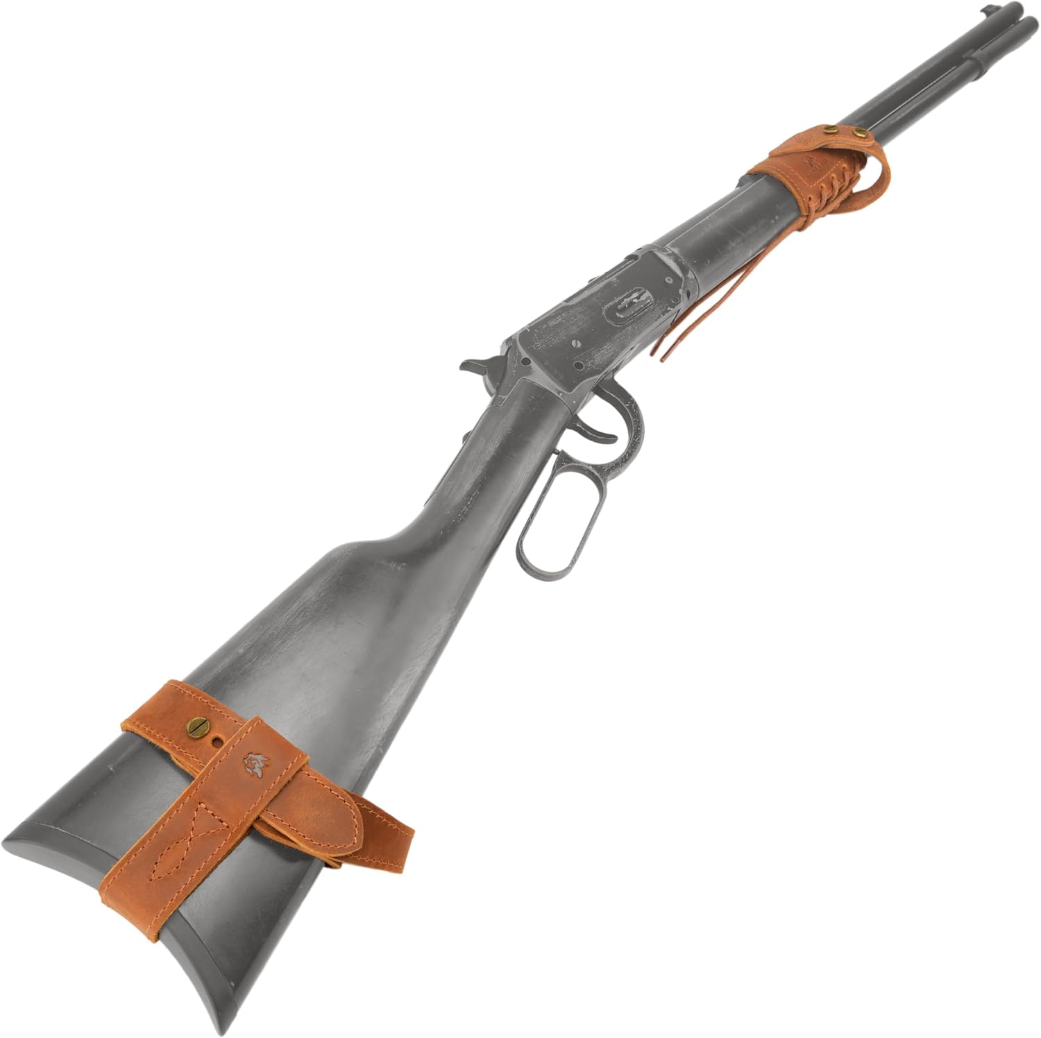 .22LR .22MAG .17HMR No Drill Leather Rifle Sling with Stock Harness and Barrel Mount Universal fit Lever Action Rifles, Crescent Shape Stock