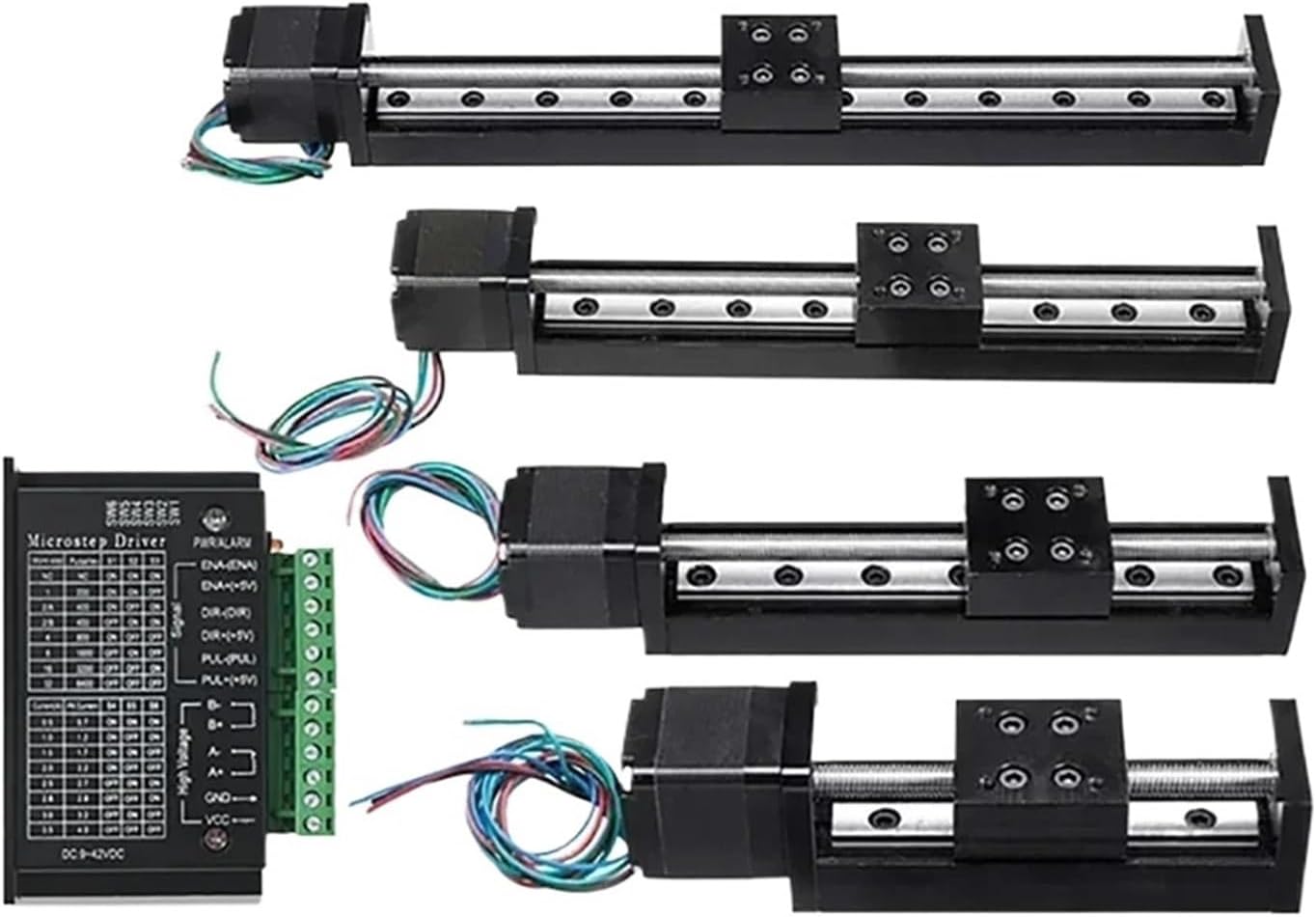 RailsEffective stroke: 50mm-300mmTotal Length: Effective Stroke+75mm Mobile panel size: 30mm*32mm Repeat positioning accuracy: 0.02mm-0.03mm Base plate material: Aluminum profile Rail material: Bearing steelMaximum speed: 80mm/sRail width: 6MMBlock: MGN8HScrew Precision: C7Model: 28HB30-401A (Support 28HB40-401A motor)Motor Flange Size: 11(28MM)Holding :0.07N.mBody length:30mm Shaft diameter: 5mmType:Hybrid MotorPhase: 2 PhaseCurrent : 0.6ACertification: CCC, ISOStep angle: 1.8degreeDriver Specifications:Model: TB6600==========Model Number : T0601Guide Width or Diameter : 6mmCertification : Horizontal load : 5KG (Max)Vertical load : 2.5KG (Max)Motor Holding : 0.07N.mEffective stroke : 50mm-300mmMobile panel size : 30mm*32mmRepeat positioning accuracy : 0.02mm-0.03mmBase plate material : Aluminum profileRail material : Bearing steelMaximum speed : 80mm/sScrew Precision : C7Current : 0.6AStep angle : 1.8degreeDrive Input voltage : DC 9-42V