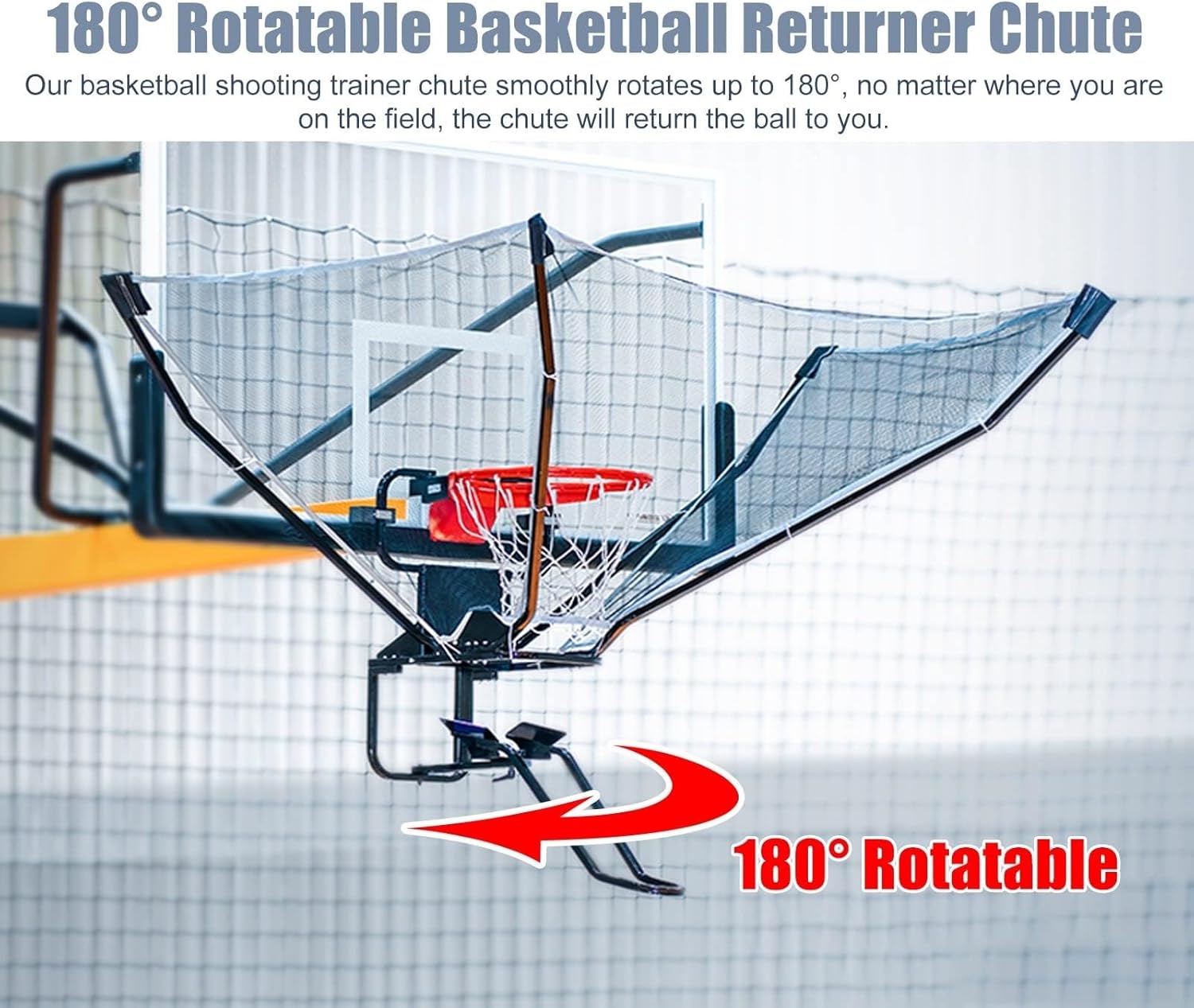 • Our basketball shooting trainer chute smoothly rotates up to 180° no matter where you are on the field the chute will return the ball to you.