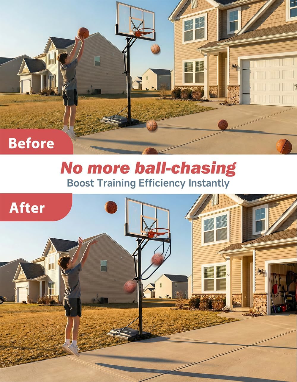 Elevate your basketball shooting skills with our Basketball Shooting Trainer Rebounder—designed to turn every solo practice session into a focused, efficient training experience that drives skill improvement. Gone are the days of wasting precious practice time chasing after rebounds. This trainer’s core advantage lies in its ability to return the ball to the exact same spot after each successful shot, letting you stay in the zone and maintain consistent shooting rhythm. Whether you’re a young player just learning the fundamentals of shooting, a parent wanting to help your child practice independently without constant assistance, or a coach looking to design targeted training drills for your team, this tool eliminates disruptions and keeps practice centered on skill development. Consistency is key to mastering basketball shooting, and our trainer delivers exactly that. By enabling repeated, focused shooting practice, it helps build muscle memory, refine shooting form, and boost accuracy over time. No more inconsistent practice sessions—each shot you take works toward strengthening your technique, making it easier to translate practice gains to real-game performance. We understand that practice doesn’t just happen in one place, which is why this trainer is built for versatility. It works flawlessly on both indoor courts (like gymnasiums) and outdoor courts (such as backyard or park courts), and it’s specifically engineered to fit standard 18" basketball rims—no extra adapters or modifications needed. Whether you want to practice at home after school or head to the park for a weekend session, this trainer adapts to your environment. The 180-degree rotatable chute adds another layer of flexibility to your practice. Easily adjust the chute’s direction to send the ball exactly where you want it—whether you prefer standing in one spot for repetitive shots or switching up your position to simulate game-like scenarios. This adaptability means the trainer grows with you, supporting different practice goals as your skills advance. From young athletes honing their shooting technique to coaches leading team drills, and anyone who values efficient solo practice, this Basketball Shooting Trainer Rebounder is more than just a tool—it’s a partner in your basketball development journey. It’s durable, easy to set up, and designed to withstand regular use in both indoor and outdoor conditions, ensuring long-lasting performance that accompanies you through every step of your skill-building process. Invest in a practice tool that prioritizes efficiency, consistency, and versatility. Take control of your shooting improvement today with our Basketball Shooting Trainer Rebounder.
