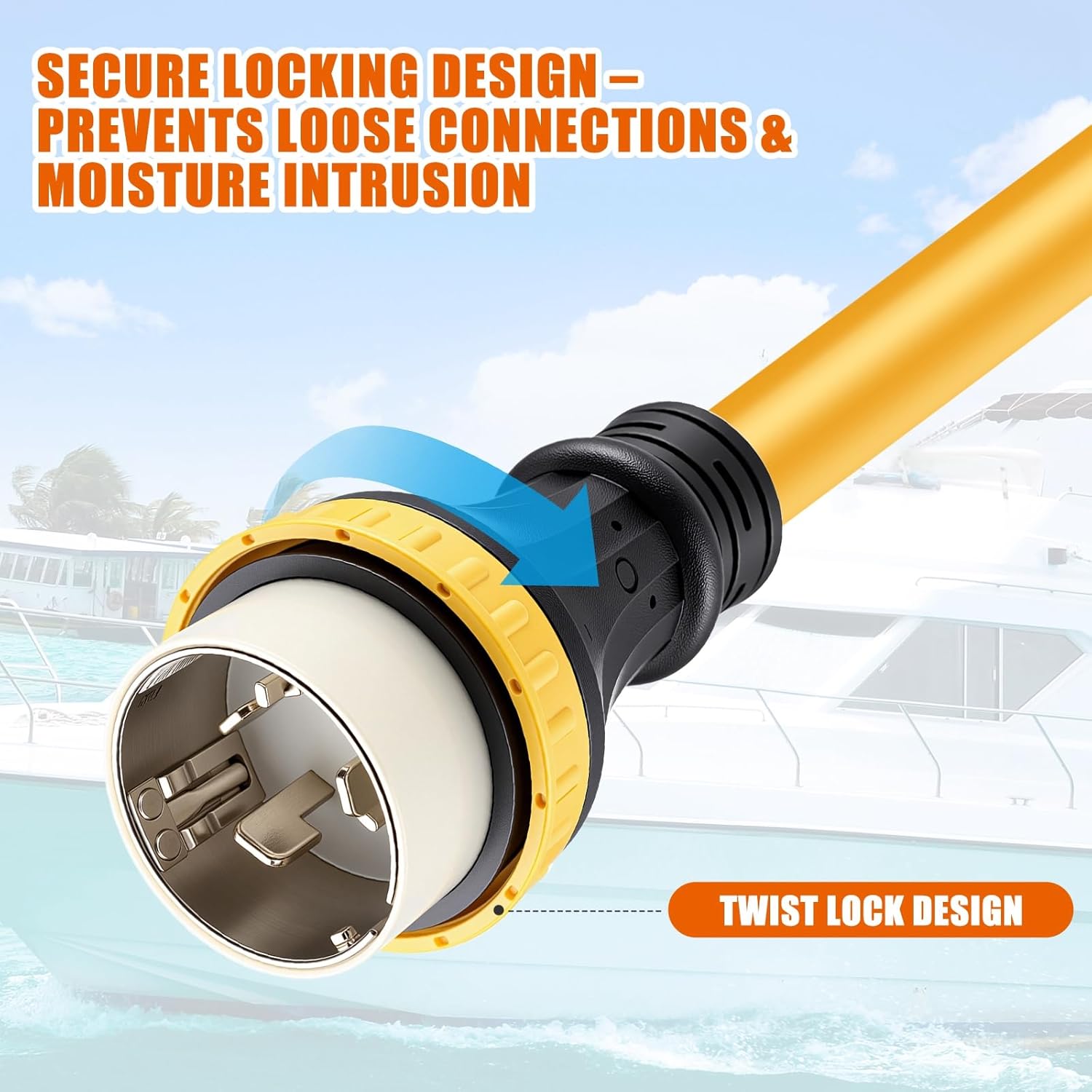 • Safe Design: boat Shore Power Adapter Cord comes with threaded locking rings on each L5-30R end and with connecting collars, It ensures the connected cords stay securely fastened, reducing electrical risks and avoiding moisture intrusion; You can use it on Yacht or RV marine style power inlet on pedestal, ideal for RV / Boat / Marine Shore Power inlet on pedestal