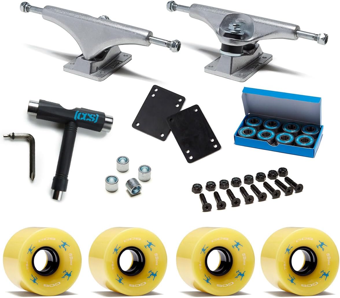 | Model | [CCS] Retro Cruiser Skateboard Assembly Kit | Professional Grade | Set of 2 Trucks | 78A Wheels | ABEC 7 Bearings | 1.25" Mounting Hardware | 1/8" Riser Pads | Bearing Spacers | Skate Tool |
