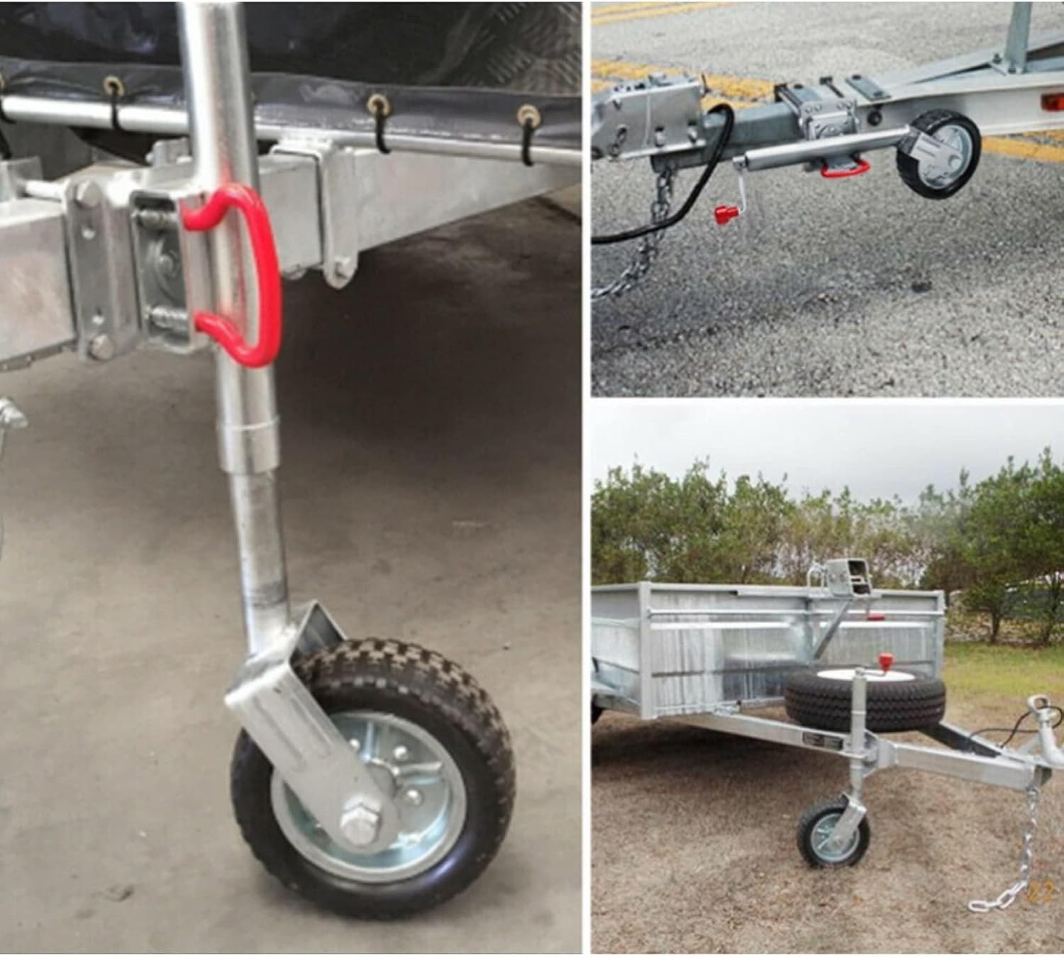【: Removable and swivel trailer rollers, high quality galvanized finish, 8" heavy iron axle wheels Includes all mounting hardware required for 10cm * 4.5" trailer frame, trailer jack designed specifically for boat and public trailers 【Basic parameters: Product name: Trailer jack/beach wheel trailer jack/guide wheel jack/fixed seat beach wheel jack Product weight: 13kg Material: steel Capacity: 540kg Travel: 10" Lifting height: 24cm 【Product package: 1* swivel trailer jack 【Please note the following: - There may be slight size errors due to manual measurement. - Due to different screen displays, there may be slight color differences. - Please be careful when using the product, please refer to the actual product.
