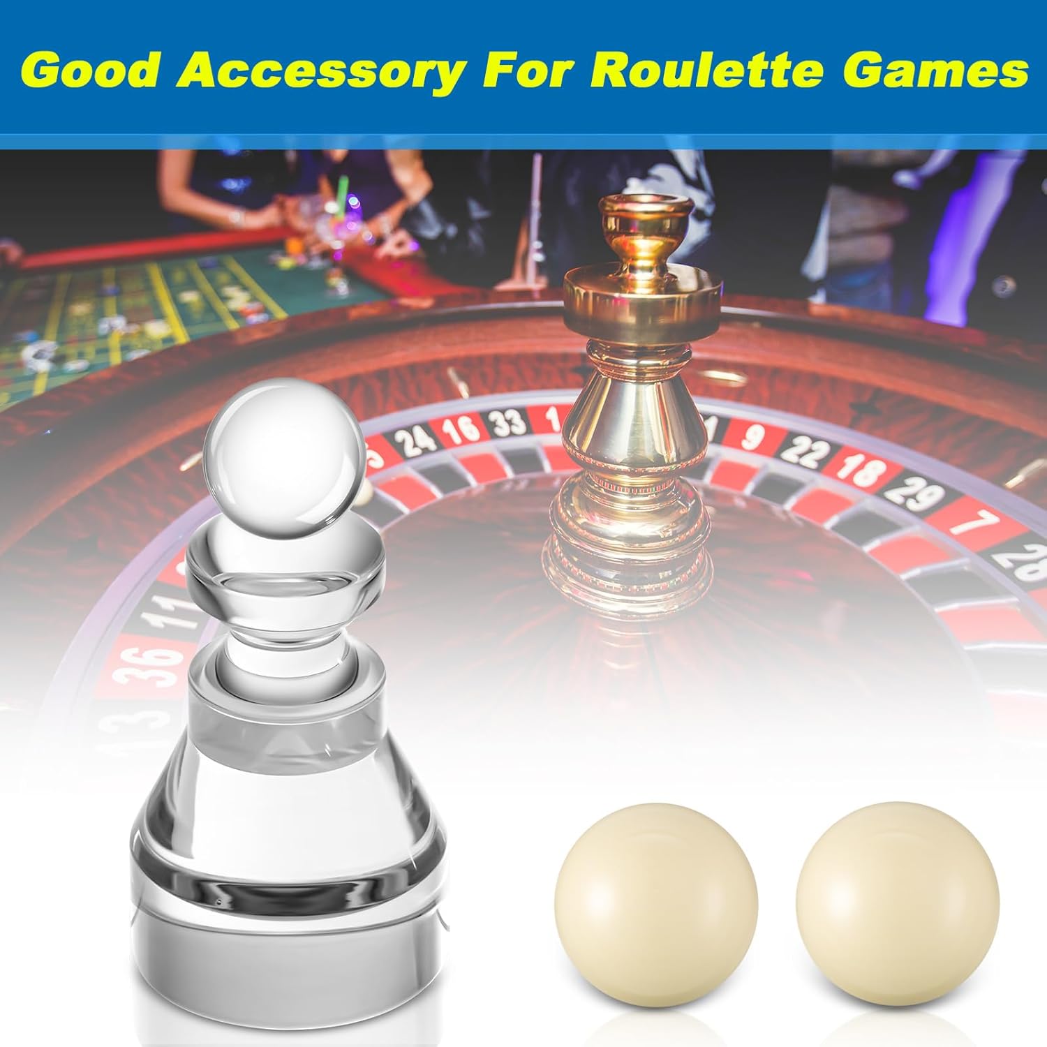 Features: This roulette set is designed with a focus on user convenience and comfort. With an easy to grip style, you can easily move and control the roulette win marker and ball, enhancing the overall gaming experience. Our roulette marker comes in an elegant clear color, which not only enhances its visual appeal but also promotes visibility. The clear color ensures that it stands out on the roulette table, making the gaming experience more enjoyable. Specifications: Material: Win marker: acrylic Roulette balls: resin Roulette win marker color: clear Size: Roulette win marker: approx. 2.95 inches/ 75 mm high, 1.18 inches in diameter Roulette balls: approx. 0.59 inches/ 15 mm in diameter Package includes: 1 x Roulette win marker 2 x Roulette balls Warm notes: Swallowing risks may exist, please keep them away from little kids. Please note the size detail information before ordering. Manual measurement, please allow slight errors on size. The color may exist a slight difference due to different screen displays.