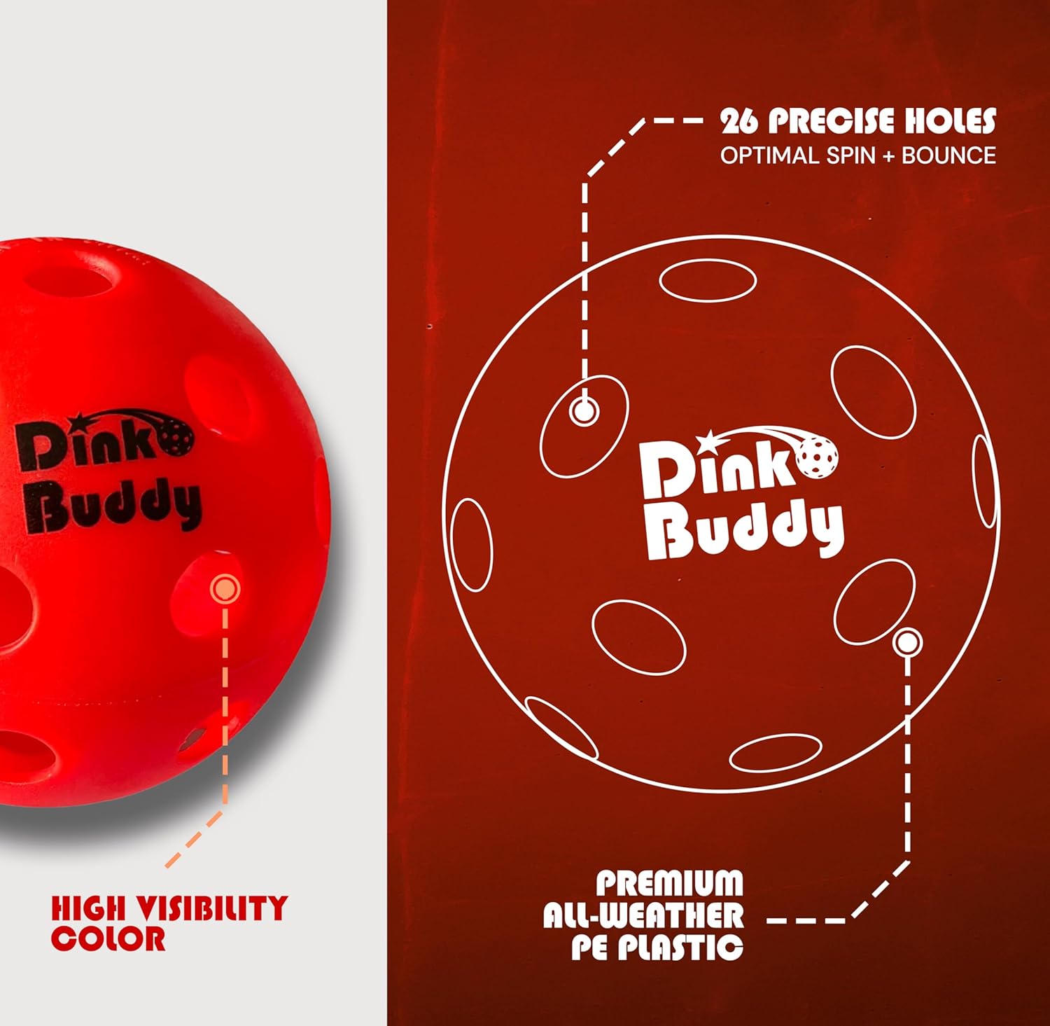 • VISIBILITY: The bright red color of pickleball balls provides clear visibility, making them easily trackable under both bright and dim lighting conditions. This ensures quick reactions on each shot and easy ball retrieval after play.