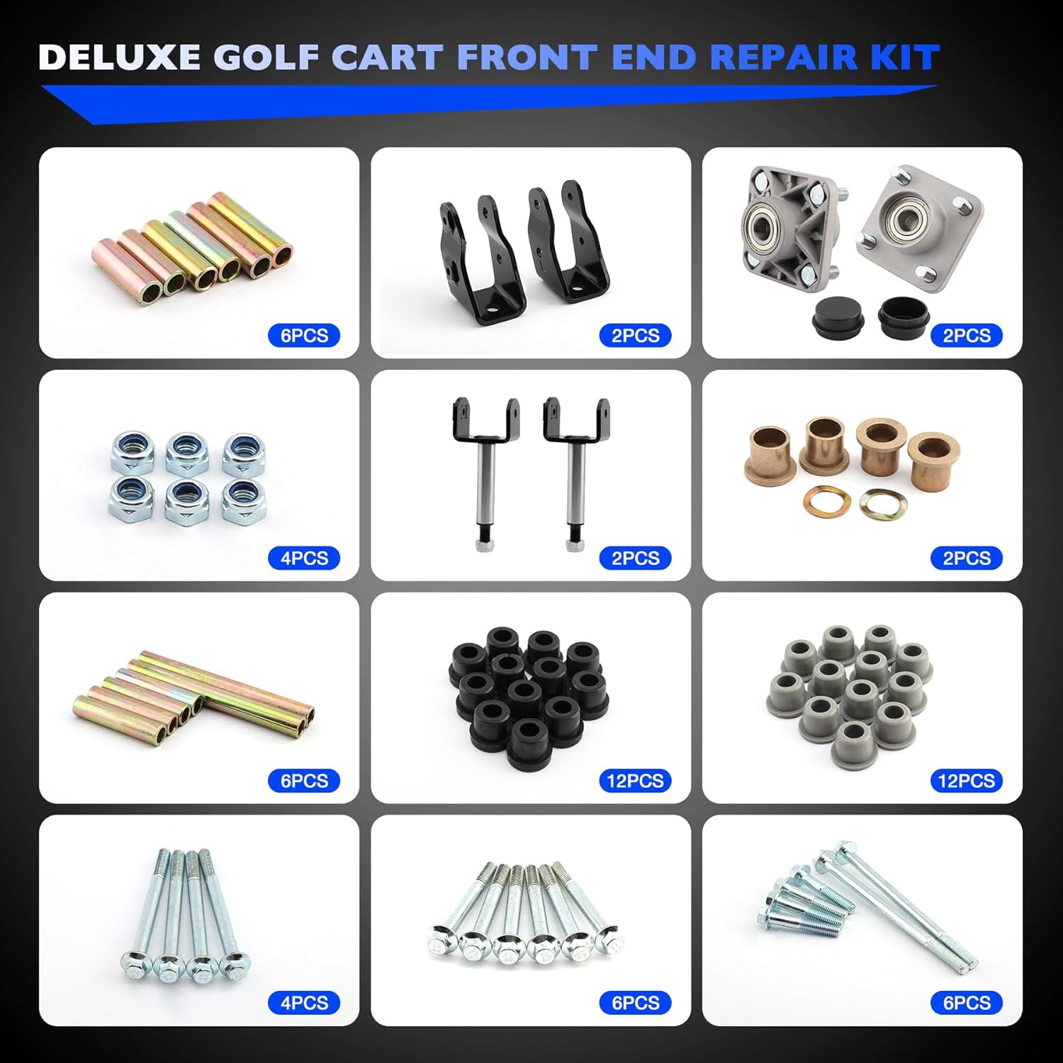 | Included Components | Deluxe Golf Cart Front End Repair Kits |