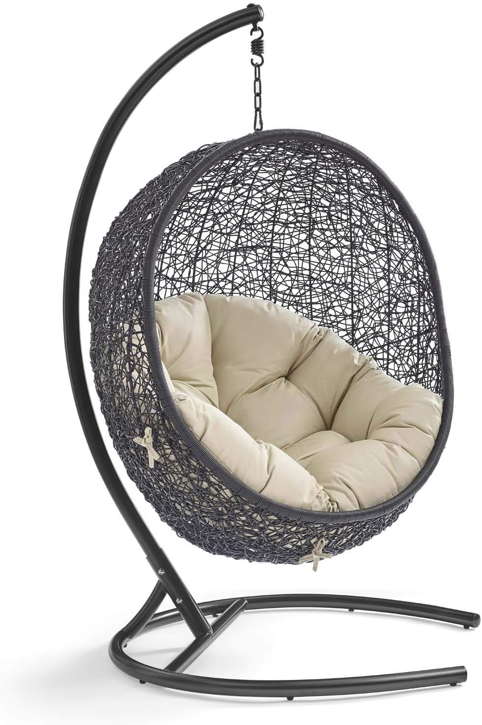 Embark on moments of metamorphosis and rebirth with an exotic hanging outdoor swing chair. Transform the mundane to heightened states of consciousness with Encase Outdoor Swing Chair. This hanging swing chair is comprised of a sturdy espresso metal stand and rattan seat. Surround yourself with plush Sunbrella fabric cushions to complete entry into a relaxed state in the Encase Hanging Chair. Set Includes: One - Encase Sunbrella Swing Lounge Chair Product Dimensions: Overall Product Dimensions: 43. 5"L x 40"W x 71"H Stand Dimensions: 39. 5"L x 40"W x 71"H Chair Dimensions: 26"L x 37"W x 47"H Cushion Dimensions: 44. 5"L x 44. 5"W x 5"H